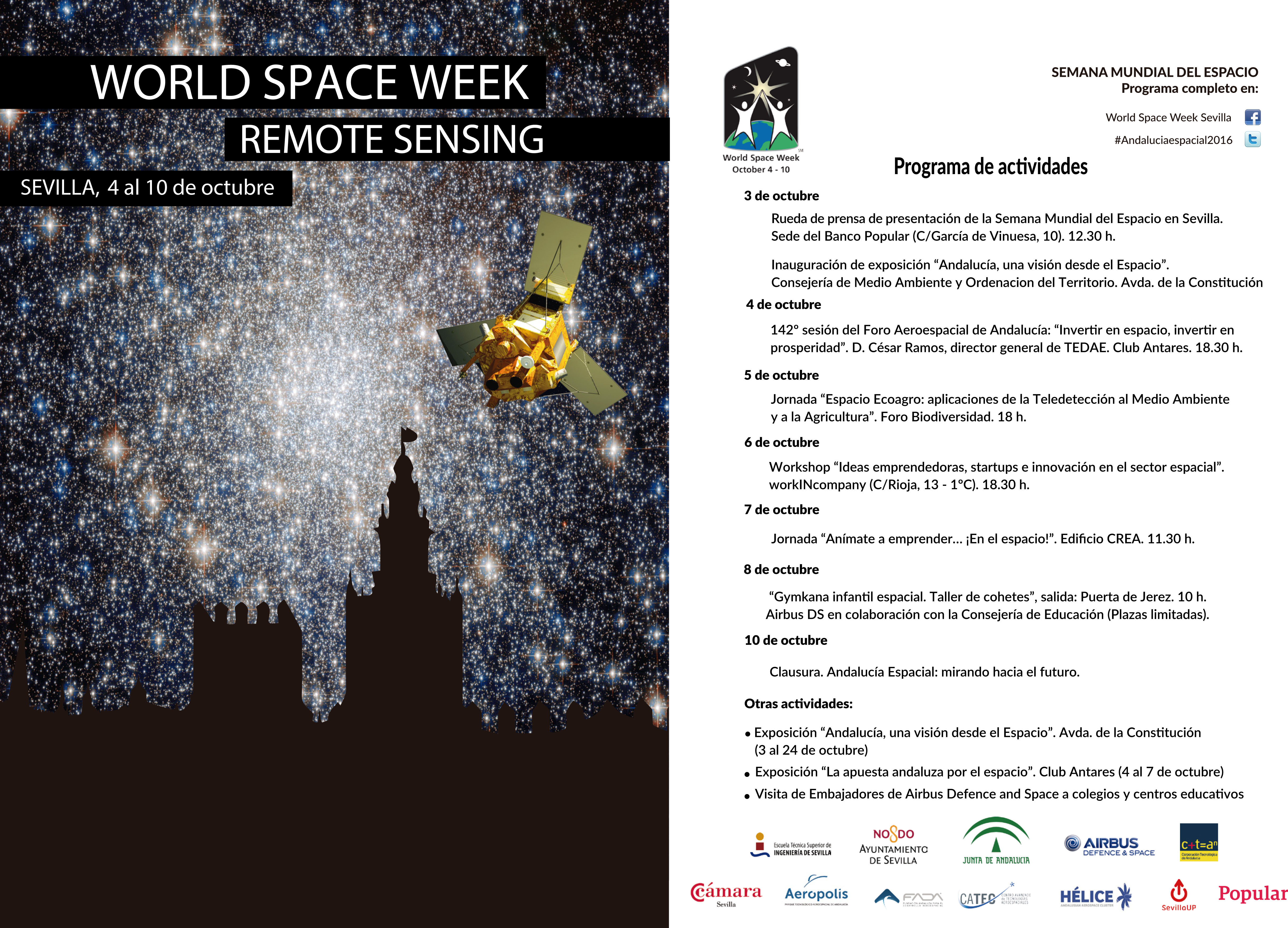 No obstante, toda la información sobre el programa de actividades en Sevilla también puede consultarse en el enlace www.facebook.com/WorldSpaceWeekSevilla.