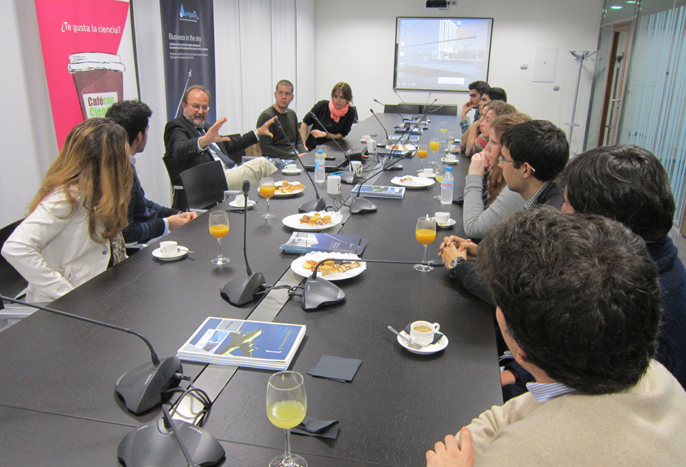 Aerópolis ya celebró en el mes de noviembre otro café-microencuentro, que tuvo como emprendedores protagonistas a los responsables de la empresa Skylife Engineering. En cada encuentro participa un empresario que se reúne con 10 estudiantes universitarios, acompañados de un profesor.