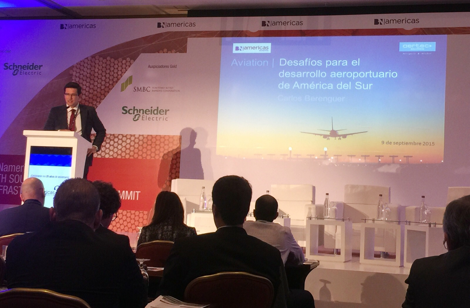 09 de septiembre de 2015.- La compañía AERTEC Solutions, multinacional de ingeniería y consultoría especializada en aeropuertos, industria aeroespacial, y transporte aéreo, ha destacado a Latinoamérica como uno de los mercados aeroportuarios que mayor potencial de crecimiento presentan para las próximas décadas, según ha manifestado su director de aeropuertos, Carlos Berenguer en un encuentro internacional sobre infraestructuras y energía que se ha celebrado los días 9 y 10 se septiembre en Bogotá (Colombia).