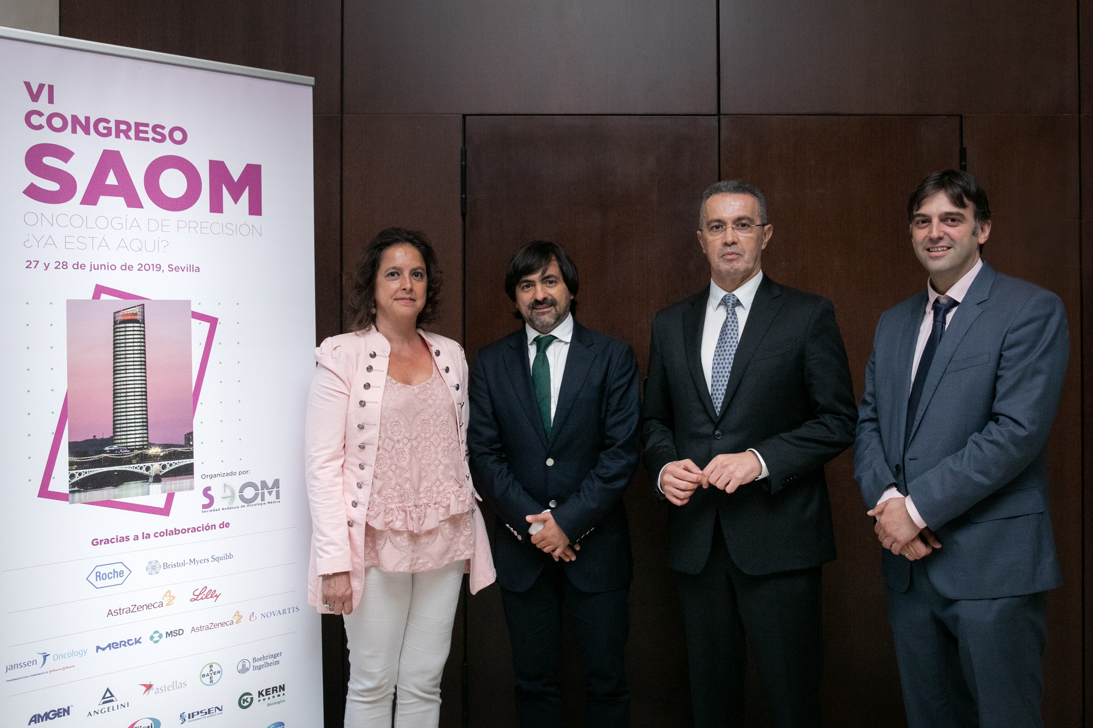 PIE DE FOTO: De izquierda a derecha, Catalina García, viceconsejera de Salud y Familias; el dr. David Vicente Baz, director del Plan Integral de Oncología de Andalucía; el dr. Manuel Ruiz, presidente de la Sociedad Andaluza de Oncología Médica (SAOM); y el dr. Fernando Henao, coordinador científico del Congreso.