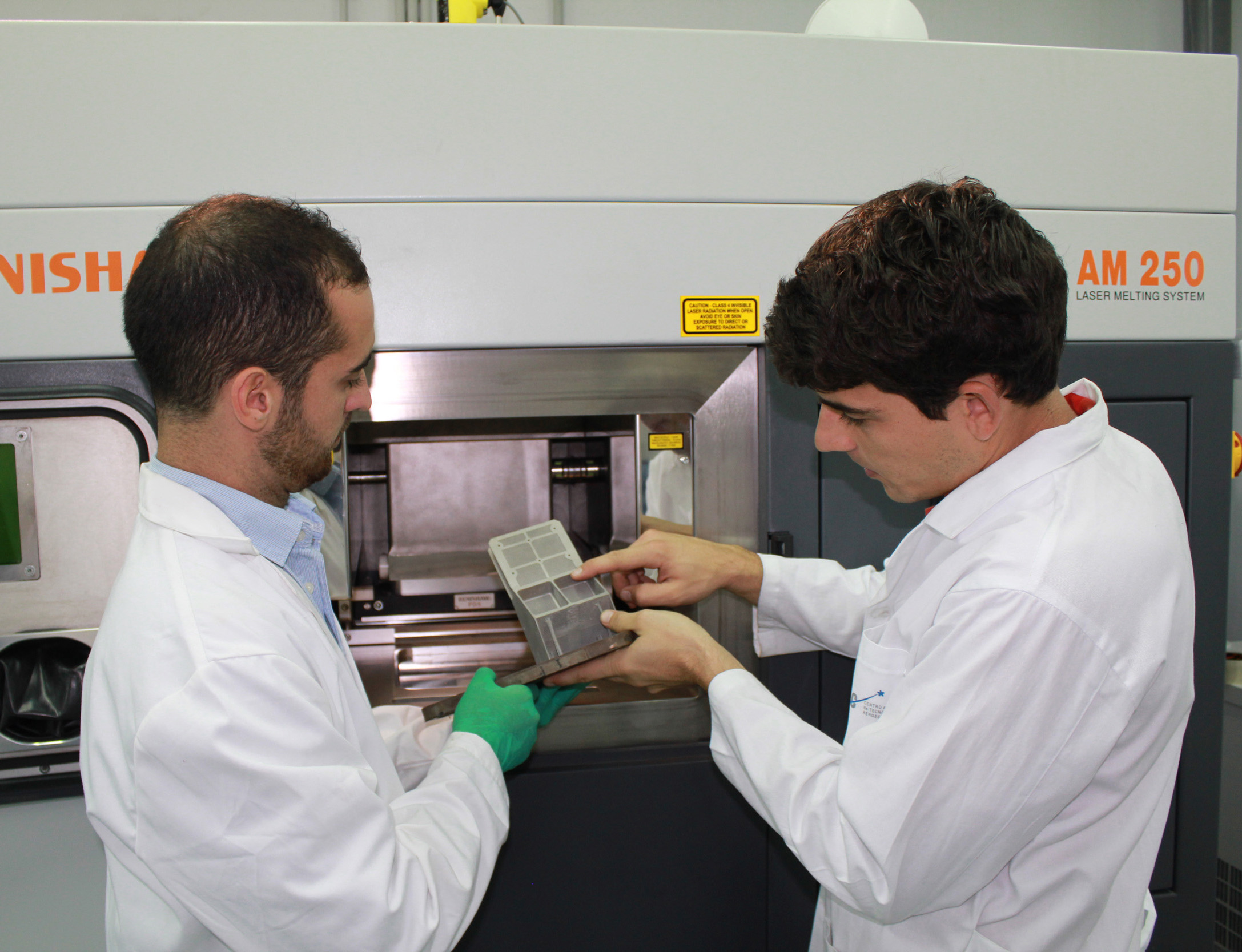 Esta tecnología consiste en la producción de piezas de aplicación final o funcional directamente desde un archivo CAD en 3D mediante tecnologías de fabricación por láser (Selective Laser Melting), añadiendo capa a capa el material en polvo (metálico, resina, etc.). Esta tecnología introduce una serie de beneficios respecto de las técnicas de fabricación convencional claramente diferenciados, como son la posibilidad de fabricar estructuras complejas, con un alto grado de libertad geométrica, y una importante minimización del peso estructural. Así, por ejemplo, el uso de estos materiales investigados por CATEC mediante la tecnología de Additive Manufacturing permitirá disminuir las horas de mecanizado de las piezas y estructuras espaciales frente a la fabricación directa del componente.