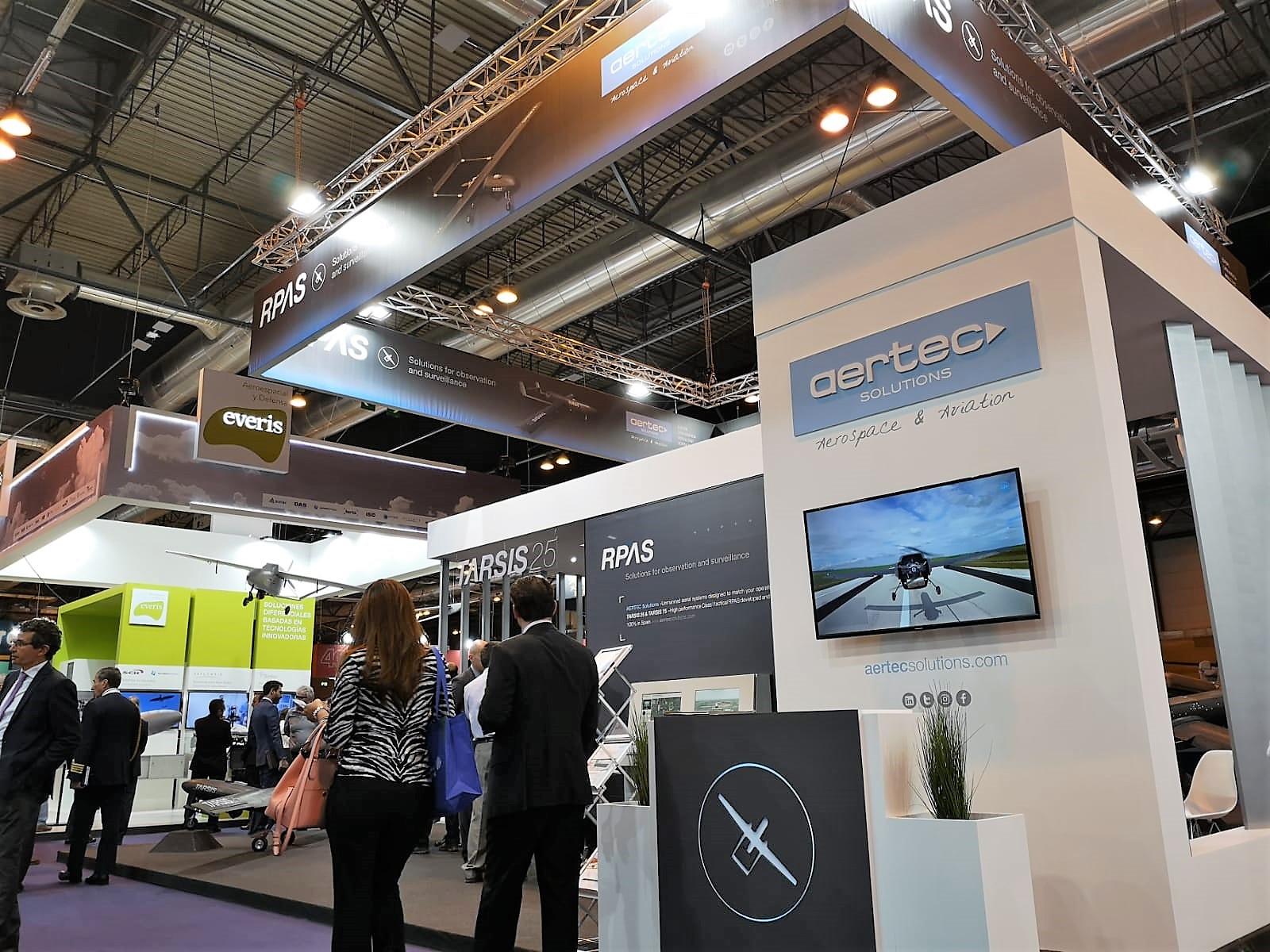 • Su stand alberga además dos prototipos de RPAS (sistemas aéreos tripulados remotamente) TARSIS, plataformas aéreas de ala fija desarrolladas con tecnología 100% española y diseñadas por AERTEC Solutions para cumplir diferentes misiones gracias a sus múltiples configuraciones.