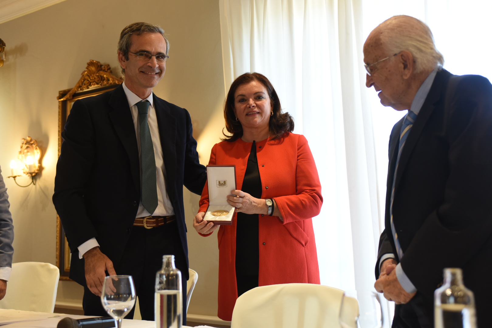 PIE DE FOTO: Carmen Peña, presidenta de la Federación Farmacéutica Internacional -máximo órgano de colegiación farmacéutica a nivel mundial- recibe de manos de Ernesto Cervilla la máxima distinción del Colegio de Farmacéuticos de Cádiz, su Medalla de Oro.