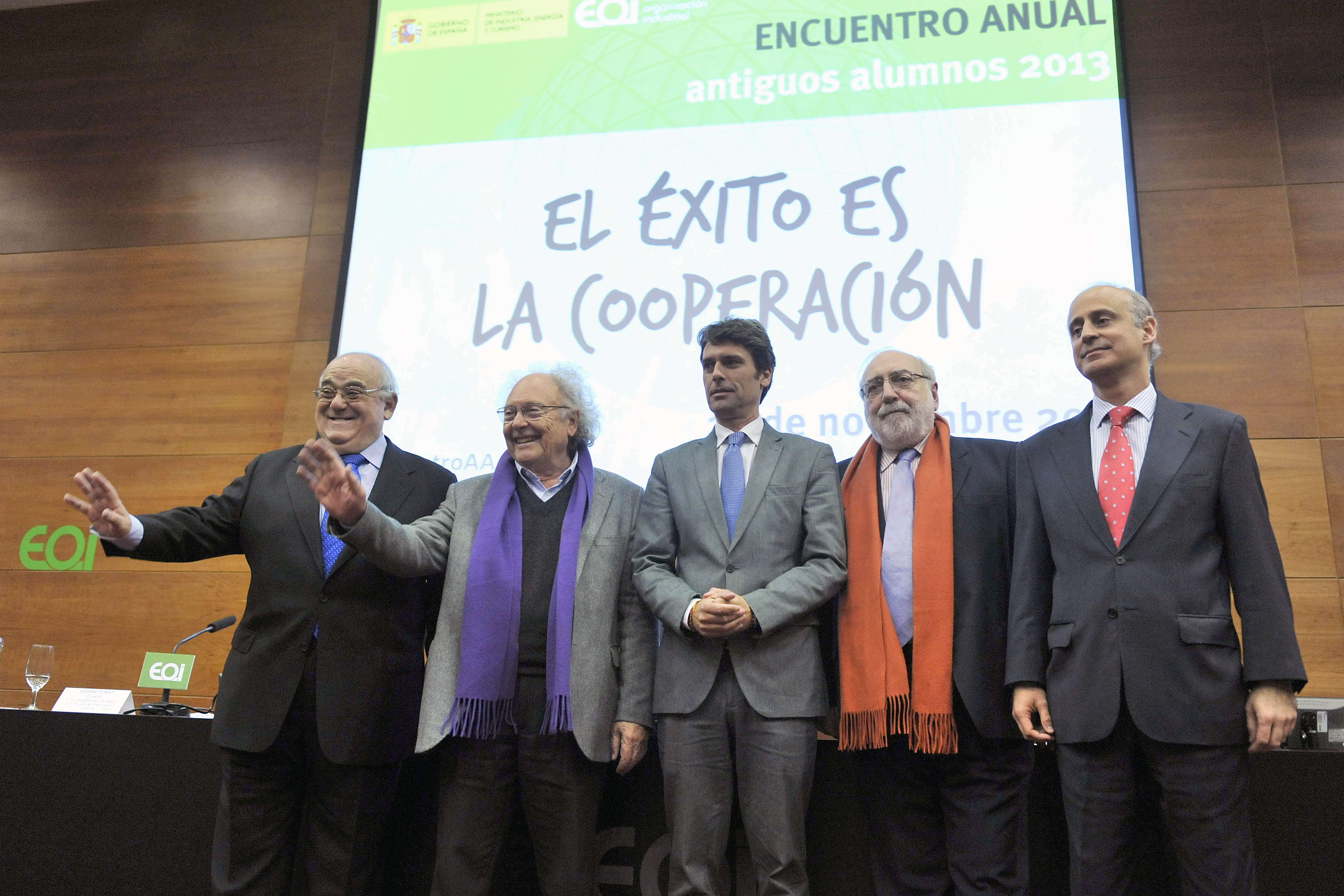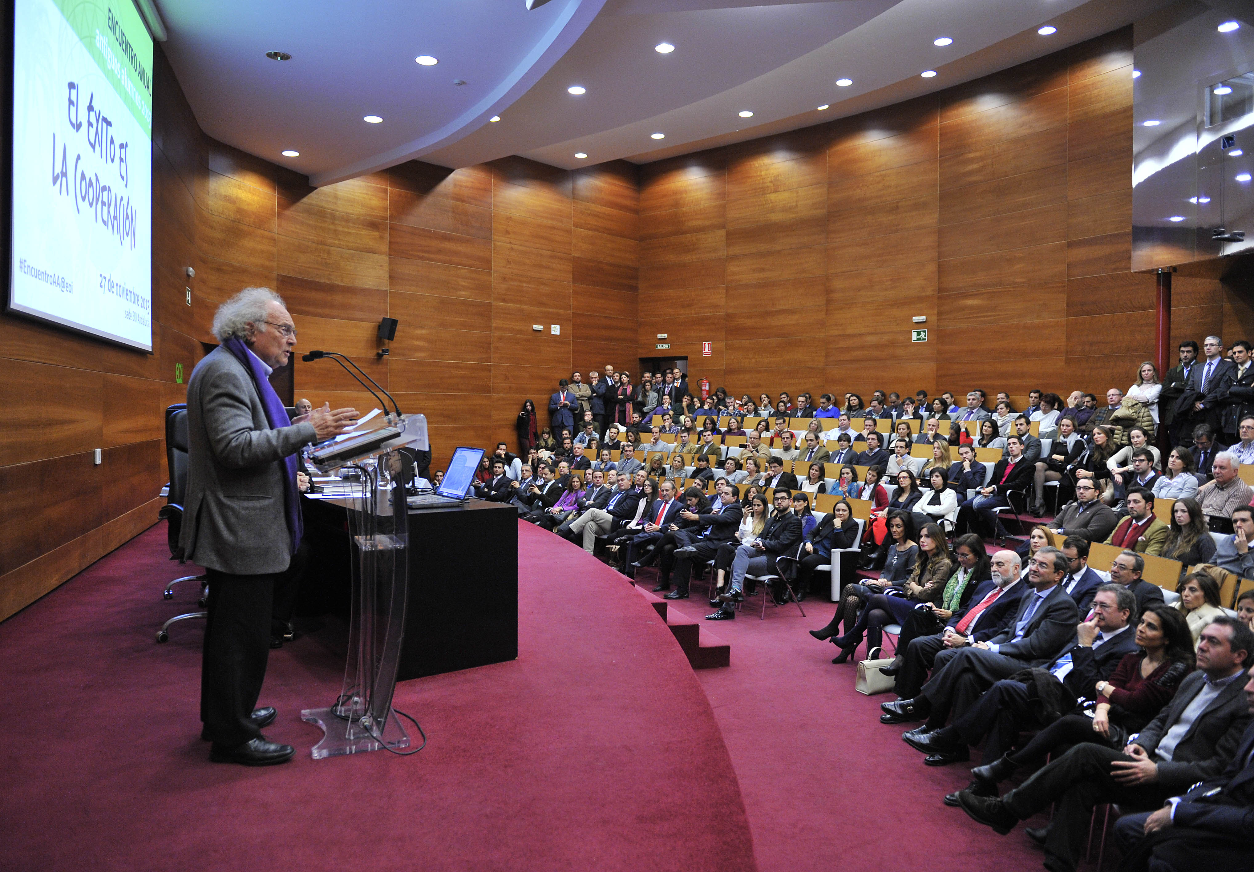 27 de noviembre de 2013.- Más de 250 ejecutivos, empresarios y representantes de la vida social y económica sevillana se han reunido en el tradicional Encuentro Anual de Antiguos Alumnos de EOI Escuela de Organización Industrial, que en esta edición contó con la presencia del prestigioso divulgador científico Eduard Punset y el humorista y presentador televisivo Manu Sánchez, quienes abordaron en sus respectivas conferencias la felicidad y el éxito en el trabajo.