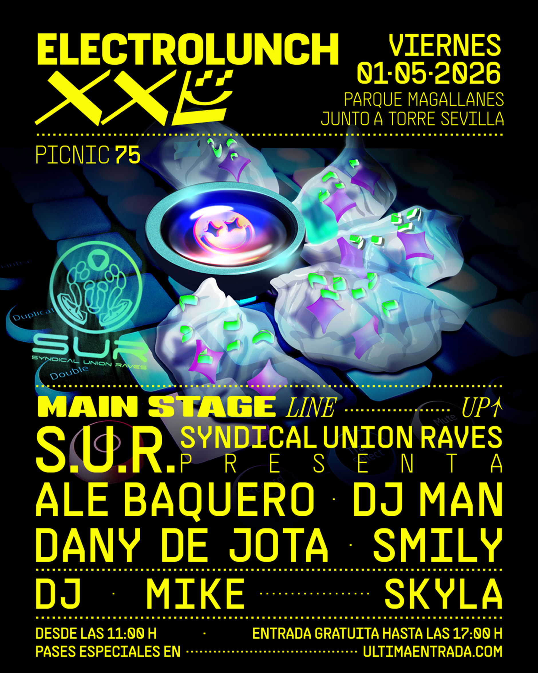 Esta experiencia compartida es, en esencia, Syndical Union Raves. S.U.R. estará representado en esta edición de Electrolunch por cuatro de los artistas más importantes de aquella época: Dj Man, Ale Baquero, Dany Dejota y Smily.