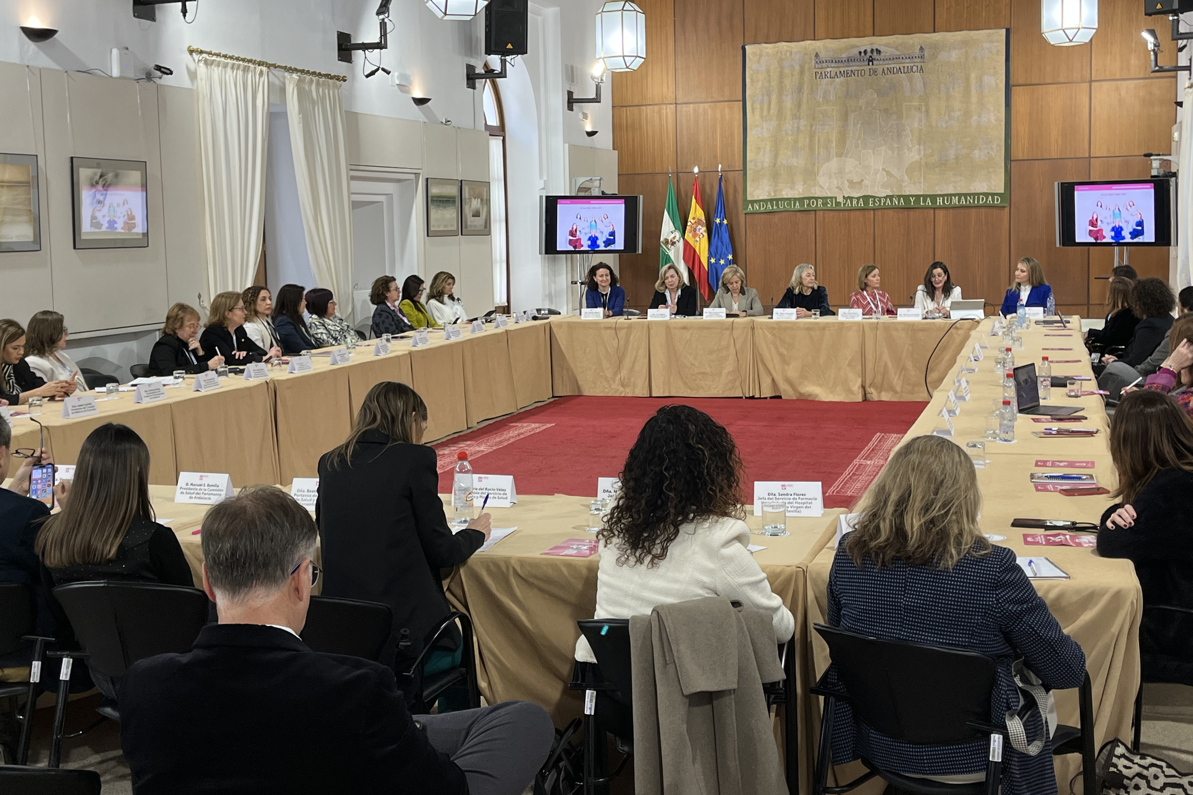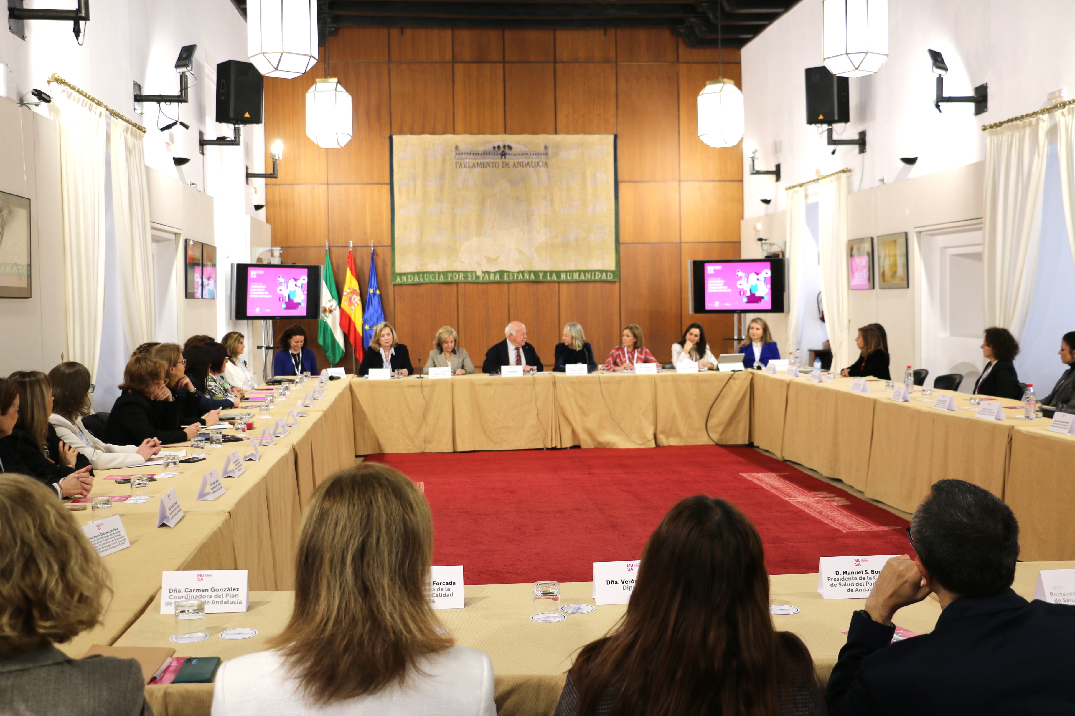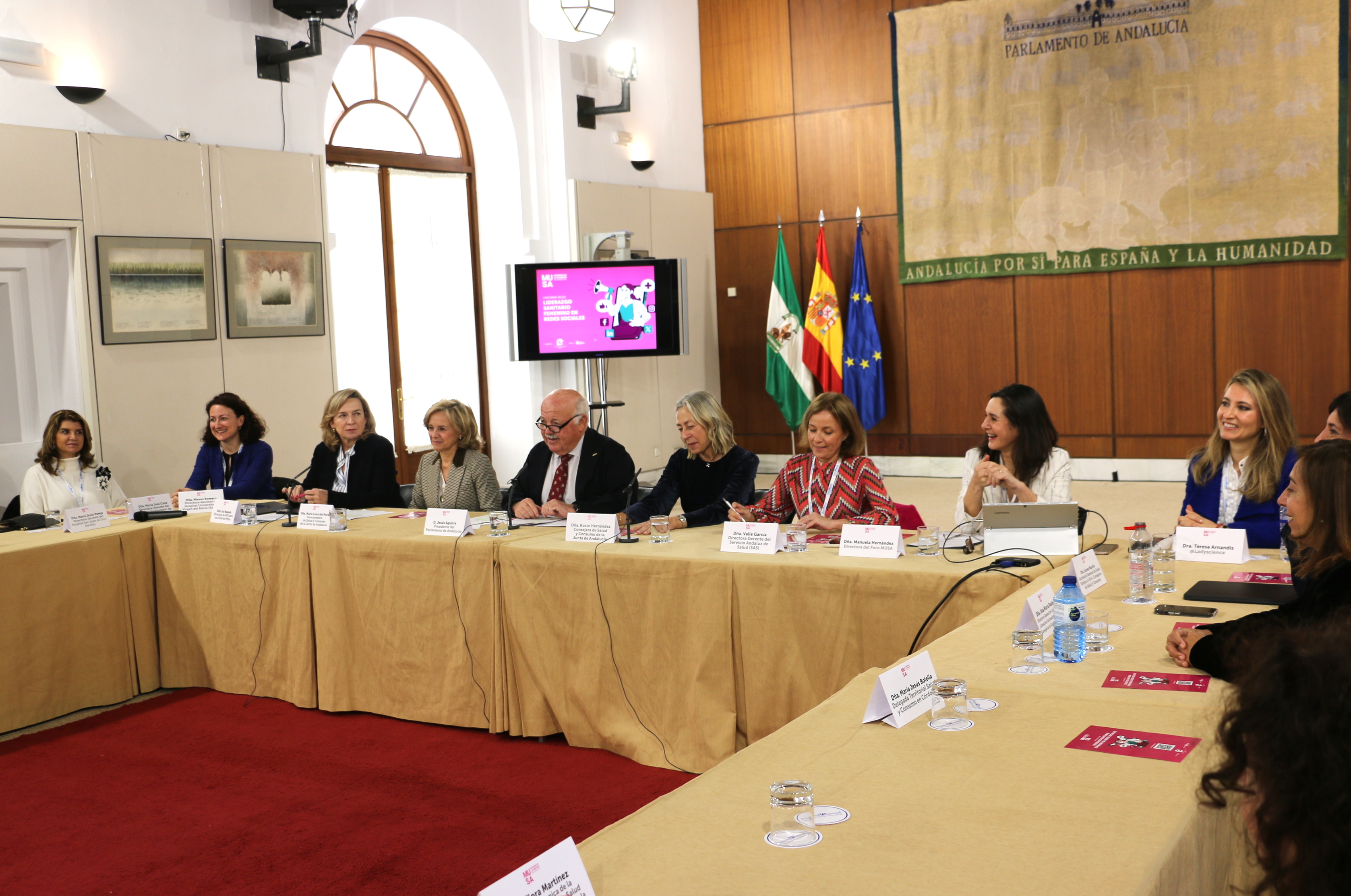 Estos resultados han sido presentados en el Parlamento de Andalucía, en el marco del IV Foro MUSA, Mujeres de la Sanidad en Andalucía, promovido por Euromedia Comunicación, y que sido inaugurado por el presidente del Parlamento de Andalucía, Jesús Aguirre, y la consejera de Salud y Consumo, Rocío Hernández Soto. En el encuentro han participado cerca de 50 mujeres con cargos directivos en diferentes ámbitos de la Sanidad en Andalucía, desde la viceconsejera, María Luisa del Moral, a la directora gerente del SAS, Valle García, la secretaria general de Salud Pública e I+D+i en Salud, Áurea Morillo, y la directora general de Cuidados y Atención Sociosanitaria, Ana María Reales, pasando por las responsables de Estrategias y Planes de Salud de Andalucía, decanas y vicedecanas de las facultades de Medicina y Farmacia, jefas de Servicio en los hospitales andaluces, mujeres con cargos de representación en Colegios Profesionales y Sociedades Científicas, Asociaciones de Pacientes, en las empresas sanitarias, etc.