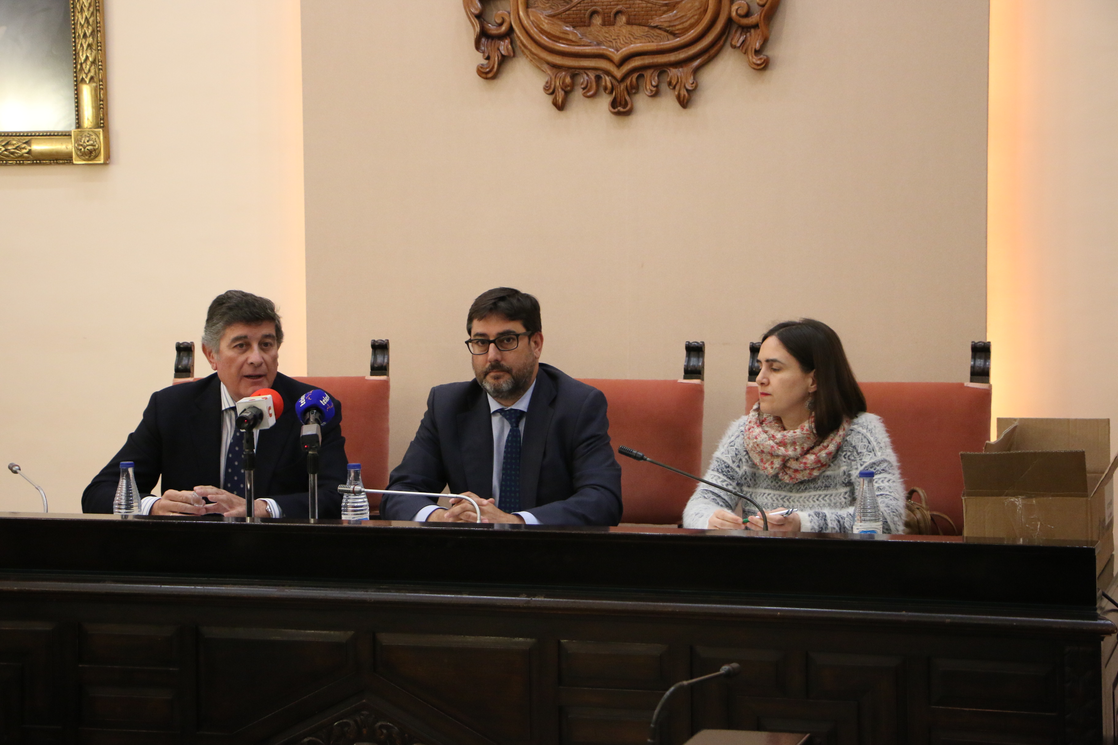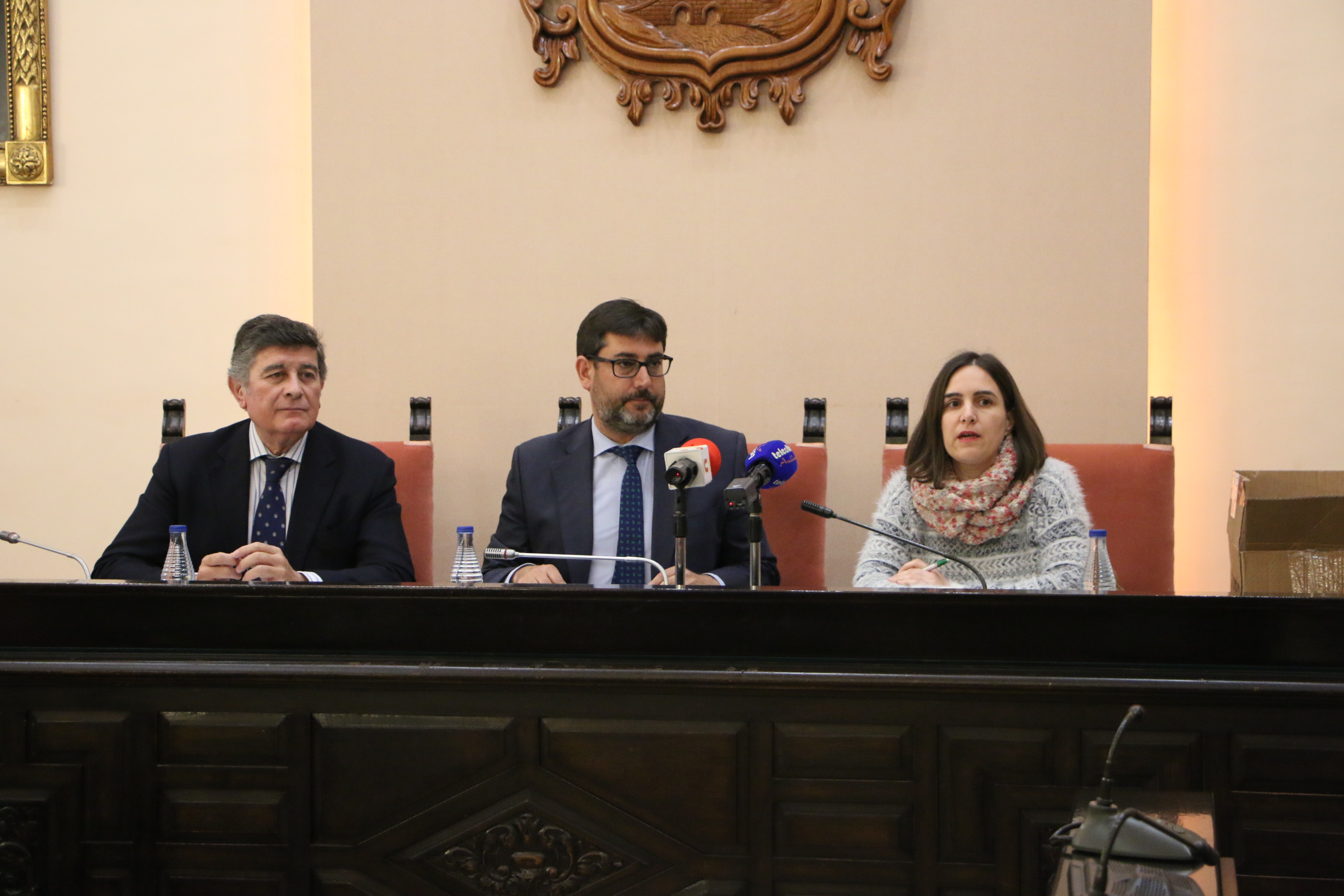 PIE DE FOTO. De izquierda a derecha: Manuel Pérez, presidente del Colegio de Farmacéuticos de Sevilla; José María Villalobos, alcalde de Utrera; y María José Ruiz, delegada de Políticas Sociales e Igualdad del Ayuntamiento de Utrera.