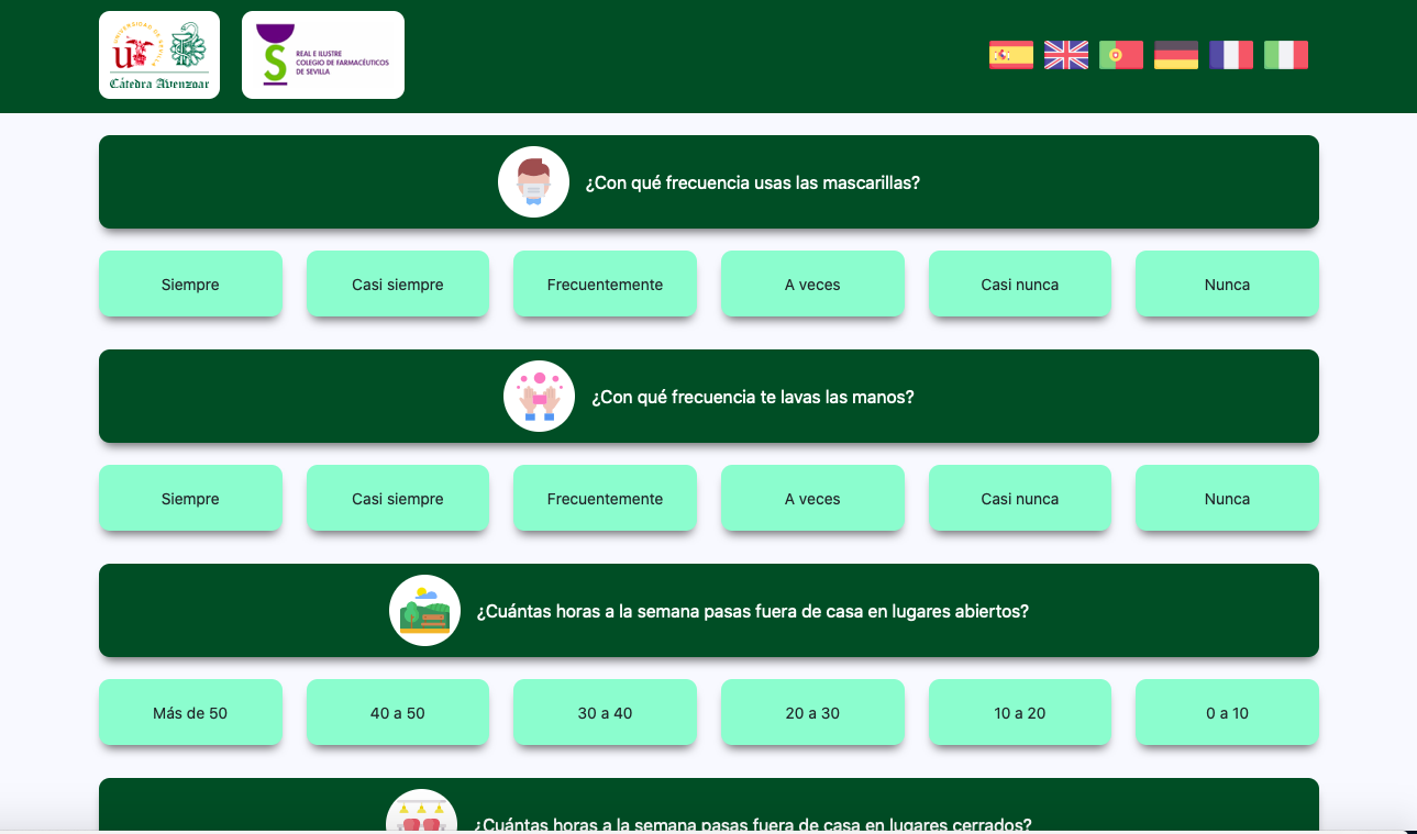 “Con esta aplicación pretendemos ayudar a muchas personas a mejorar su comportamiento frente al coronavirus, ya que te permite evaluar de forma inmediata, mediante la puntuación que te otorga, cómo son sus hábitos de prevención y aprender a mejorarlos”, explica Antonio Mª Rabasco, catedrático de la Facultad de Farmacia de la Universidad de Sevilla, vocal de Docencia, Investigación e Industria del Colegio de Farmacéuticos de Sevilla y promotor de esta aplicación, a la que se puede acceder a través de la dirección web covid.catedraavenzoar.es.