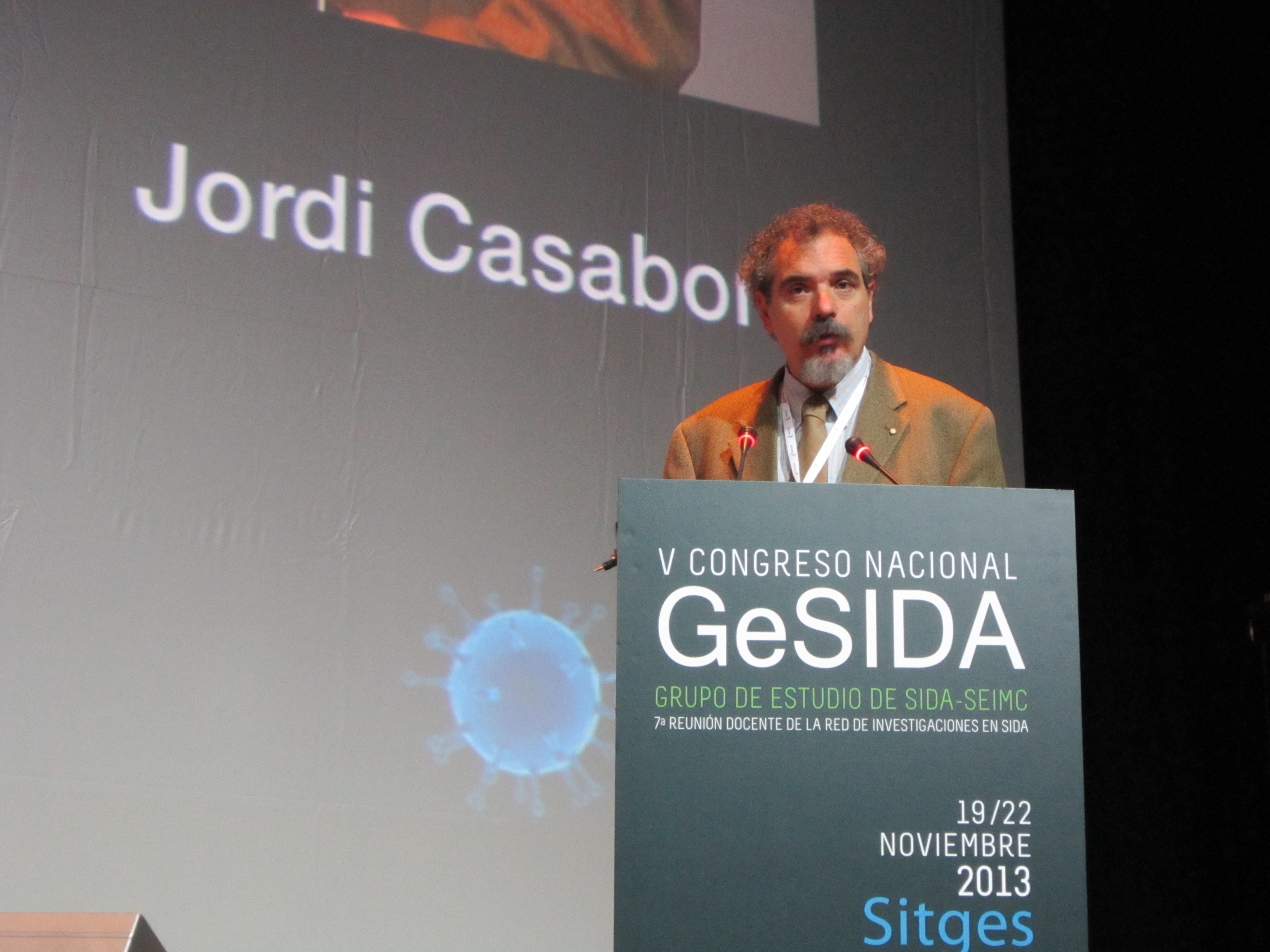 PIE DE FOTO: El Dr. Jordi Casabona, durante su intervención en la última sesión plenaria del V Congreso Nacional de GeSIDA, celebrada esta mañana en Sitges (Barcelona)