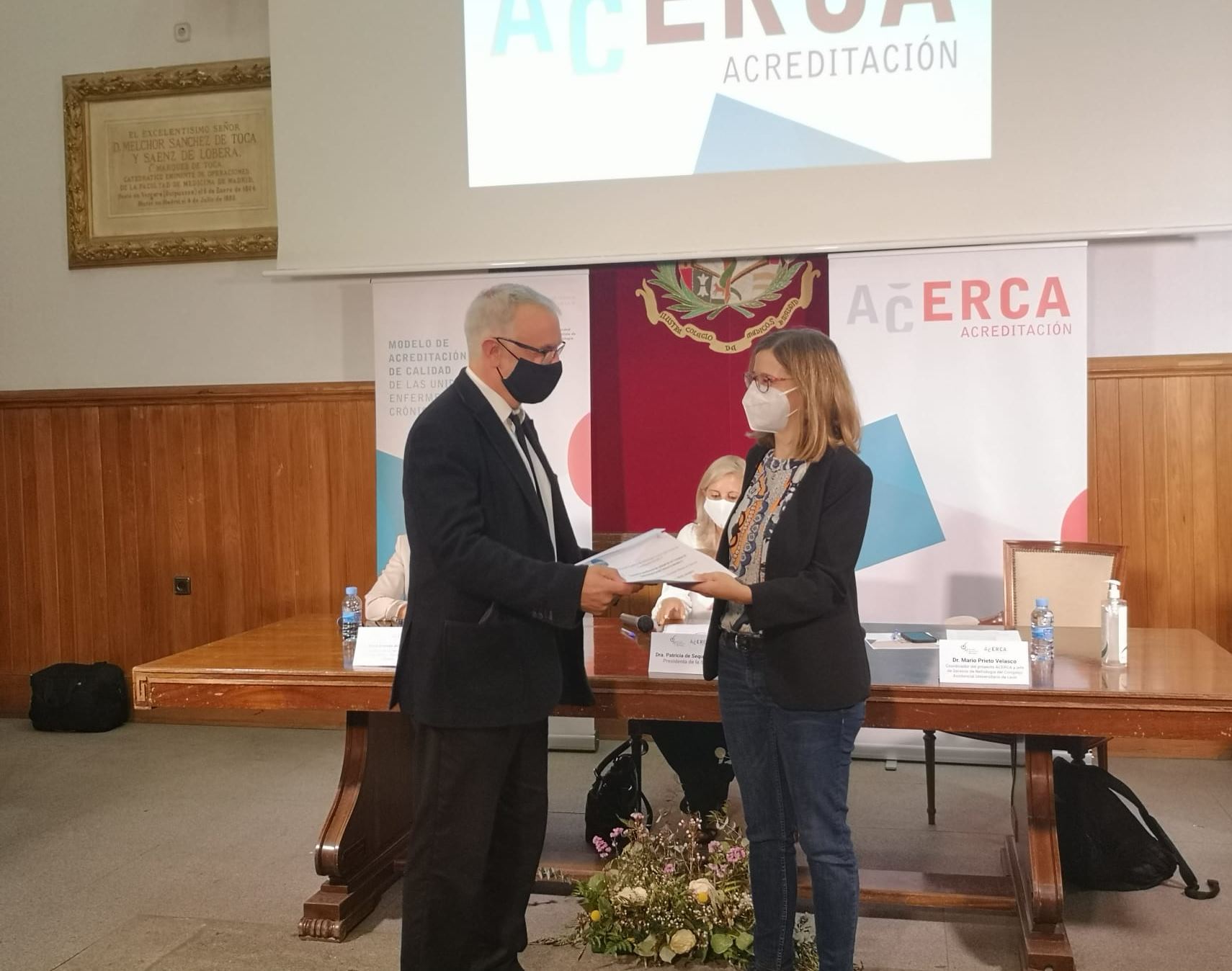 Santander, 28 de septiembre de 2021.- La Sociedad Española de Nefrología (S.E.N.) ha hecho entrega hoy, en un acto celebrado en el Colegio de Médicos de Madrid, del reconocimiento con la acreditación ACERCA al Hospital Universitario Marqués de Valdecilla de Santander por implantar el primer modelo de Acreditación de Calidad de las unidades que tratan a los pacientes con Enfermedad Renal Crónica Avanzada (ERCA, por sus siglas).