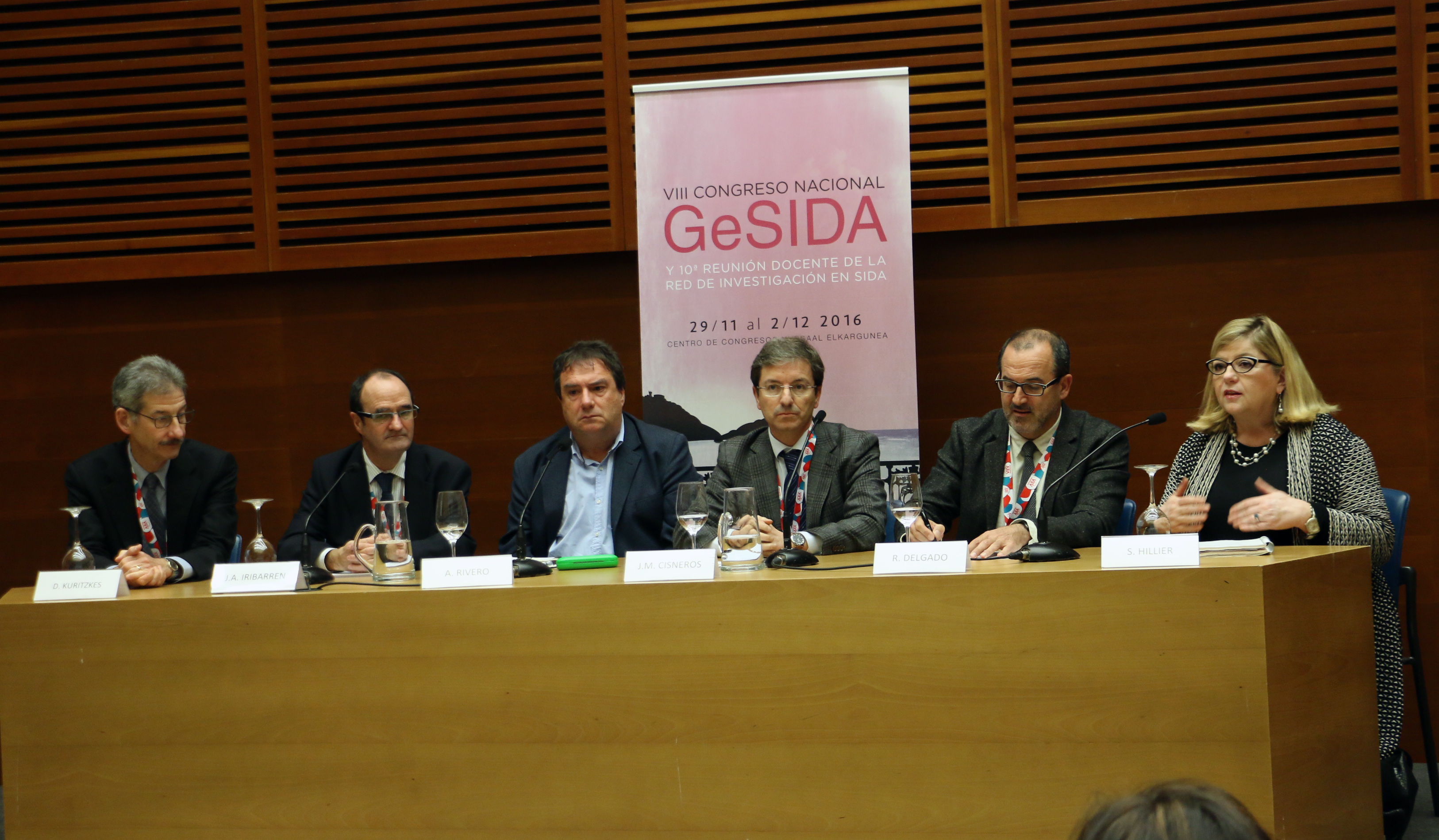 San Sebastián, 29 de noviembre de 2016.- Hoy arranca en San Sebastián el VIII Congreso de GeSIDA, que ha convocado a uno de los mayores expertos del mundo en la investigación para la curación definitiva del VIH, así como a una de las más afamadas expertas internacionales en prevención. Se trata de Daniel Kuritzkes y Sharon Hillier, que hoy han acompañado al presidente de GeSIDA, Antonio Rivero, en la presentación de este encuentro científico, el más importante sobre VIH que se celebra anualmente en España y que congregará hasta el próximo 2 de diciembre a más de 600 especialistas. “Ambos protagonizarán las conferencias inaugurales del Congreso y proporcionarán el marco perfecto para el debate que tendrá lugar a partir de mañana, y que tendrá precisamente en la prevención y en la curación dos puntales temáticos fundamentales”, ha explicado el presidente de GeSIDA, Antonio Rivero, que ha precisado no obstante que el encuentro abordará muchas otras cuestiones, como los nuevos fármacos y estrategias en el tratamiento del VIH, los nuevos retos de la coinfección VIH-VHC en la era de los antivirales de acción directa, las nuevas estrategias para el diagnóstico precoz y el control de la epidemia o los indicadores de calidad asistencial.