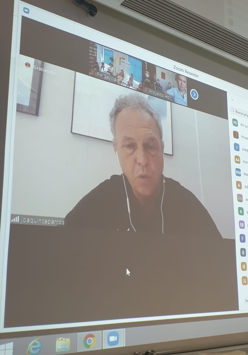 Sevilla, 29 de mayo de 2020.- El conocido entrenador y director deportivo de clubes de fútbol Joaquín Caparrós ha mantenido un encuentro online con profesionales andaluces de Proyecto Hombre, de todas las provincias de la comunidad, en el que les ha agradecido la labor social que desarrollan con las personas que tienen algún tipo de problemas de adicciones y les ha motivado y animado para que continúen realizándola durante esta difícil situación actual con motivo de la crisis del COVID-19.