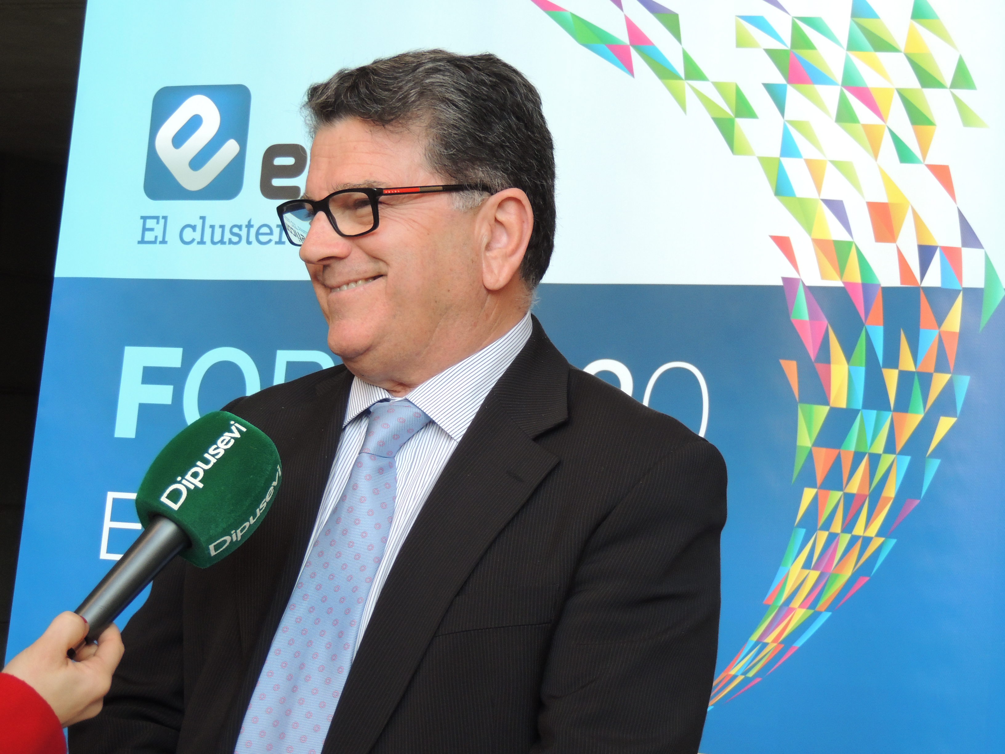 Sevilla, 5 de diciembre de 2014. El presidente de la Asociación Clúster de Empresarios de Tecnologías de la Información y Comunicación de Andalucía, ETICOM, Fernando Rodríguez del Estal, ha destacado la creación de empleo como el reto principal de la Comunidad autónoma así como el papel dinamizador y motor que supone el sector TICC en este sentido. Así lo ha afirmado en el III Foro 2020 organizado por la Asociación Clúster en la I Feria de Innovación y Nuevas Tecnologías de la Diputación de Sevilla.