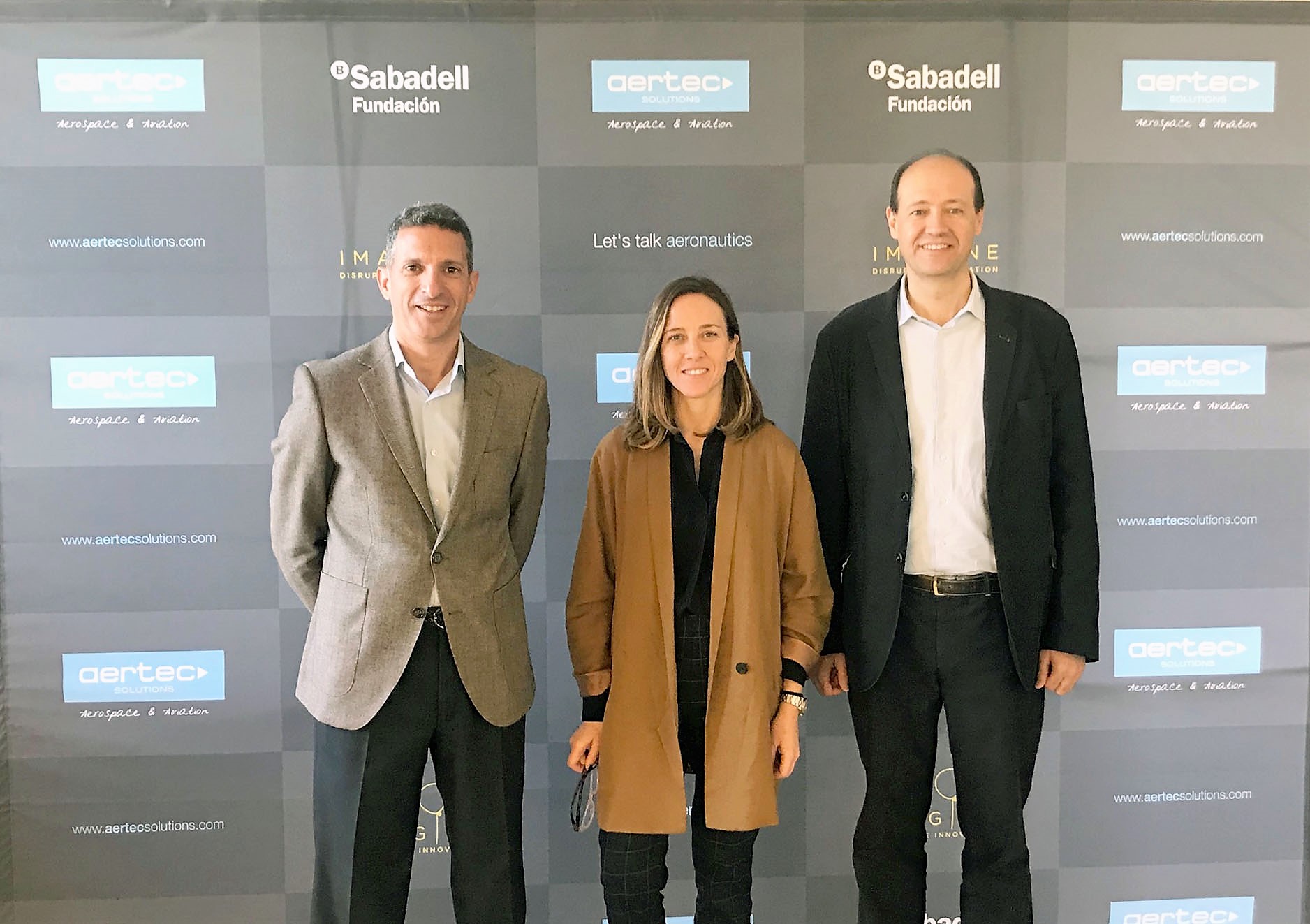 De izq. a dcha: Fernando Martín, Director de Marketing y Comunicación de AERTEC Solutions, Sonia Mulero, directora adjunta de la Fundación Banco Sabadell y Pedro Pablo Sánchez, Director de Innovación de AERTEC Solutions.