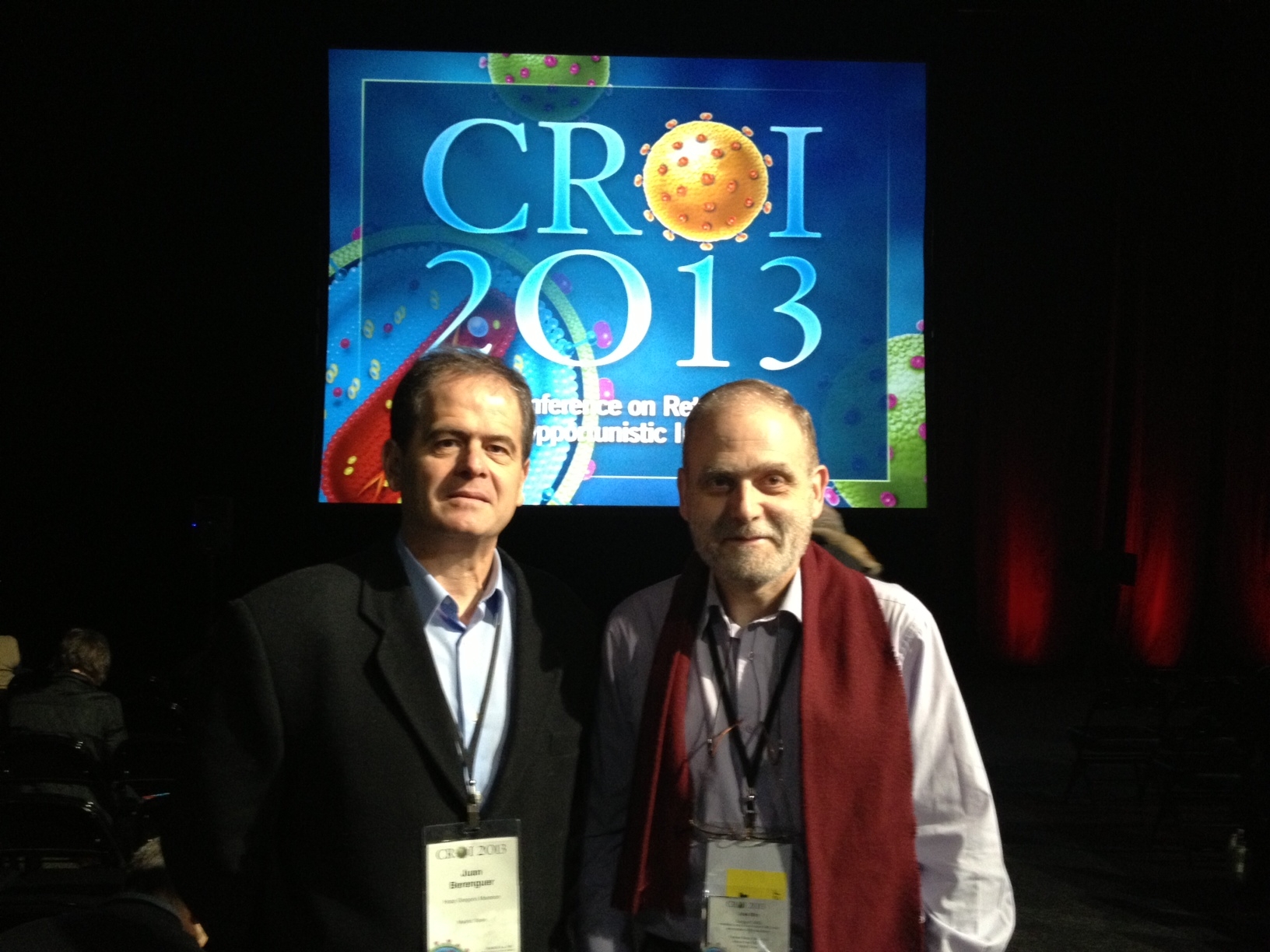 Pie de foto: El secretario de GeSIDA, el Dr. Juan Berenguer (izquierda, y que presentó un estudio en la primera jornada del congreso) junto al Dr. José María Miró, también integrante de este grupo de estudio, fotografiados en el CROI celebrado en Atlanta.