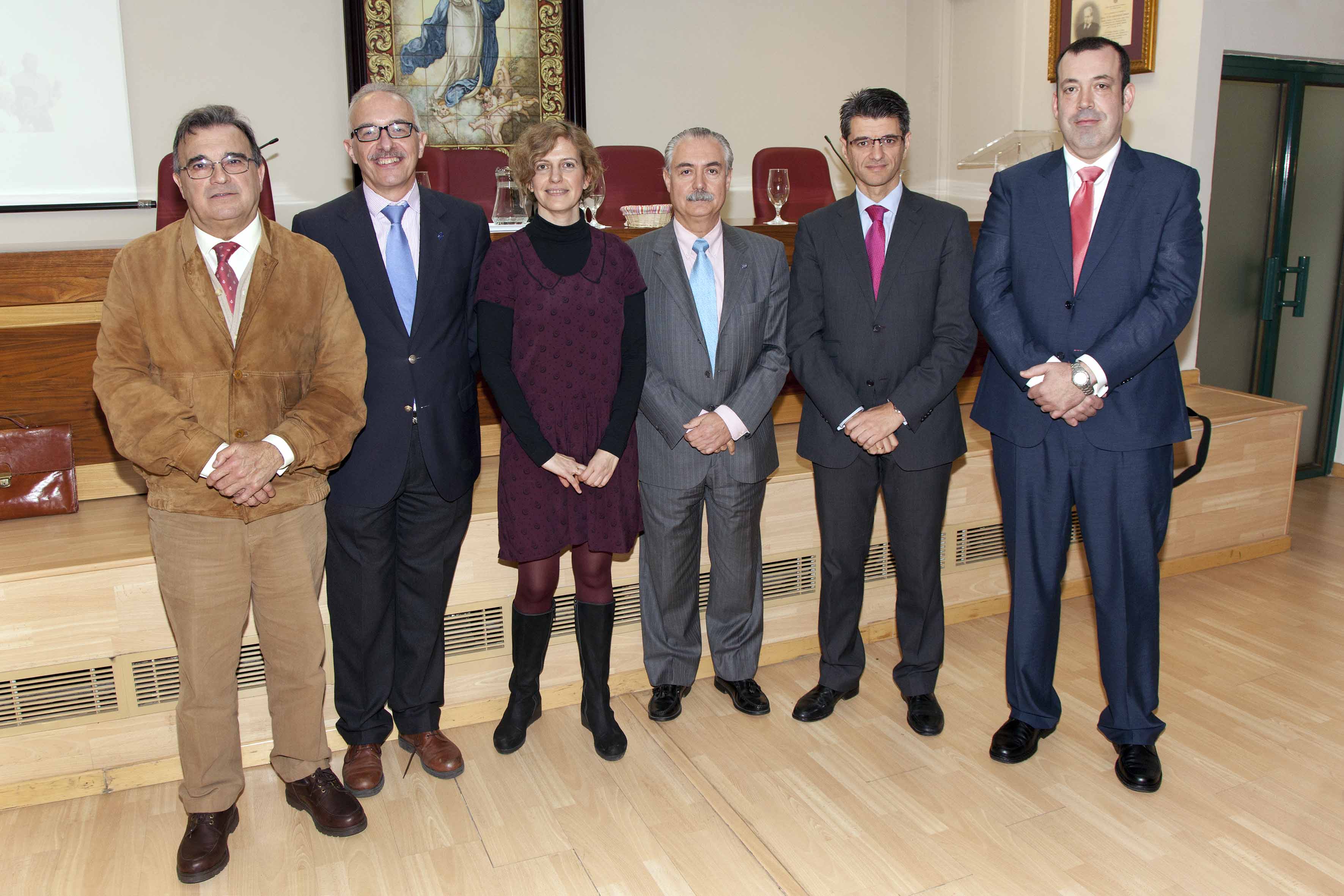 Pie de foto. De izquierda a derecha, los ponentes de la jornada: Joaquín Herrera; Manuel Ojeda, vicepresidente del Colegio de Farmacéuticos de Sevilla; Purificación Casas; Antonio Blanes y Manuel Martínez.
