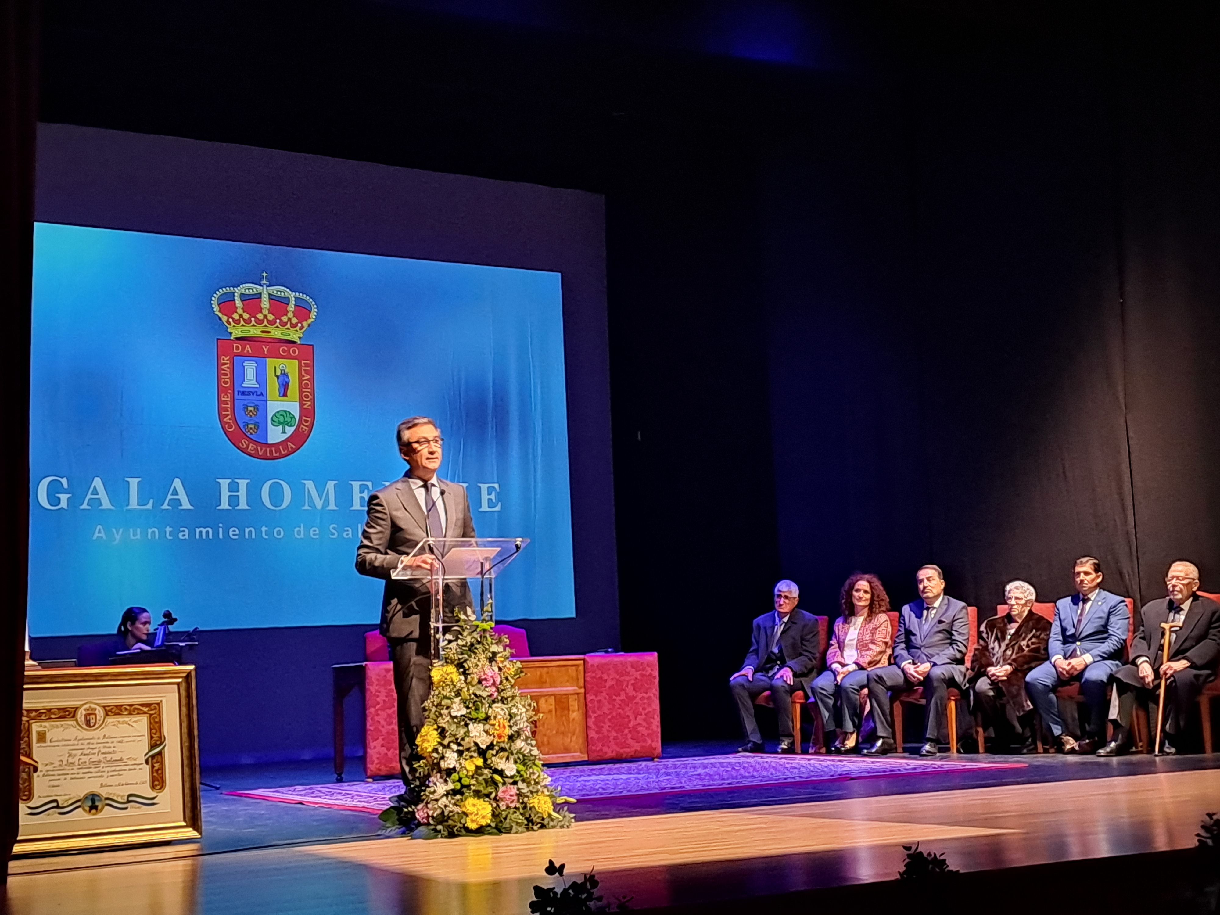 Salteras 12 de febrero Esta mañana, el Teatro Municipal de Salteras ha acogido uno de los actos más emotivos desde que se inaugurase el pasado verano. La “Gala Homenaje” a los Saltereños más ilustres donde las menciones a las personas designadas lo han sido, por su experiencia, ejemplaridad, por sus vivencias y su entrega, haciéndoles merecedores de la concesión otorgada. El alcalde, Antonio Valverde Macías ha sido el encargado de presentar y moderar la ceremonia.