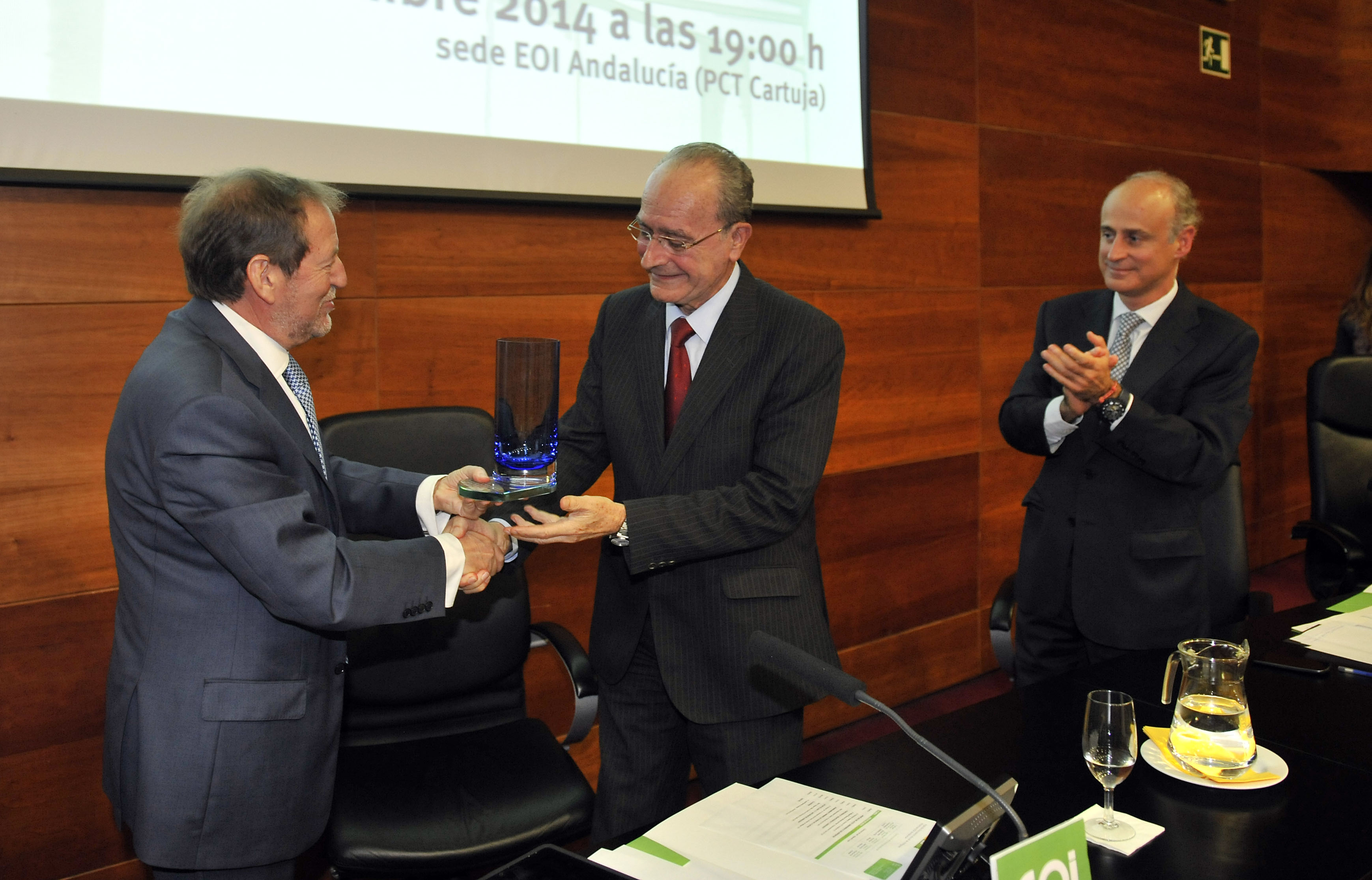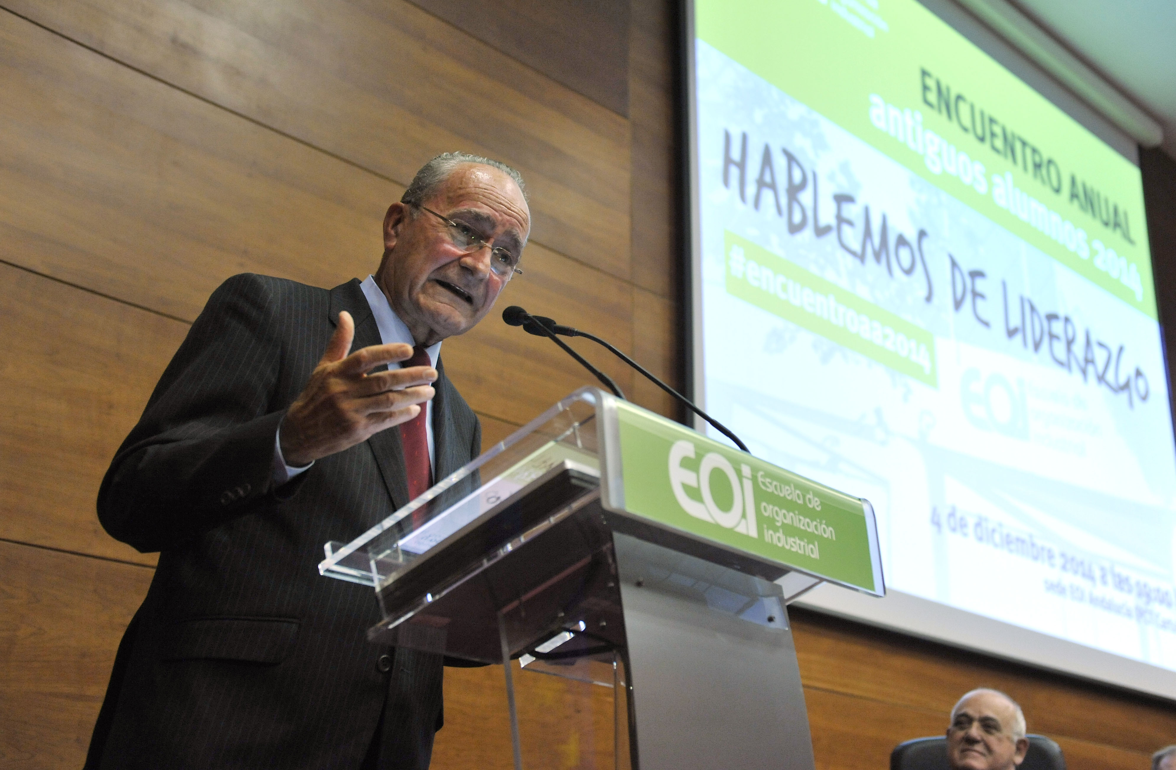 Sevilla, 5 de diciembre de 2014. El alcalde de Málaga, Francisco de la Torre, ha sido nombrado miembro de honor del Club EOI ante la presencia de más de 300 emprendedores y ejecutivos, en el marco del Encuentro Anual de Antiguos Alumnos celebrado en la sede de la Escuela de Organización Industrial (EOI) en Sevilla. Francisco Velasco, director de EOI Andalucía, destacó del primer edil de Málaga “la combinación de visión estratégica; y de la capacidad de implementación y ejecución de esa estrategia". En este sentido, analizó aspectos que han convertido a Málaga en referente, como el desarrollo de la innovación y la tecnología, su apuesta por la Smart City o Ciudad Inteligente, la promoción cultural o la consolidación de Málaga como destino turístico.