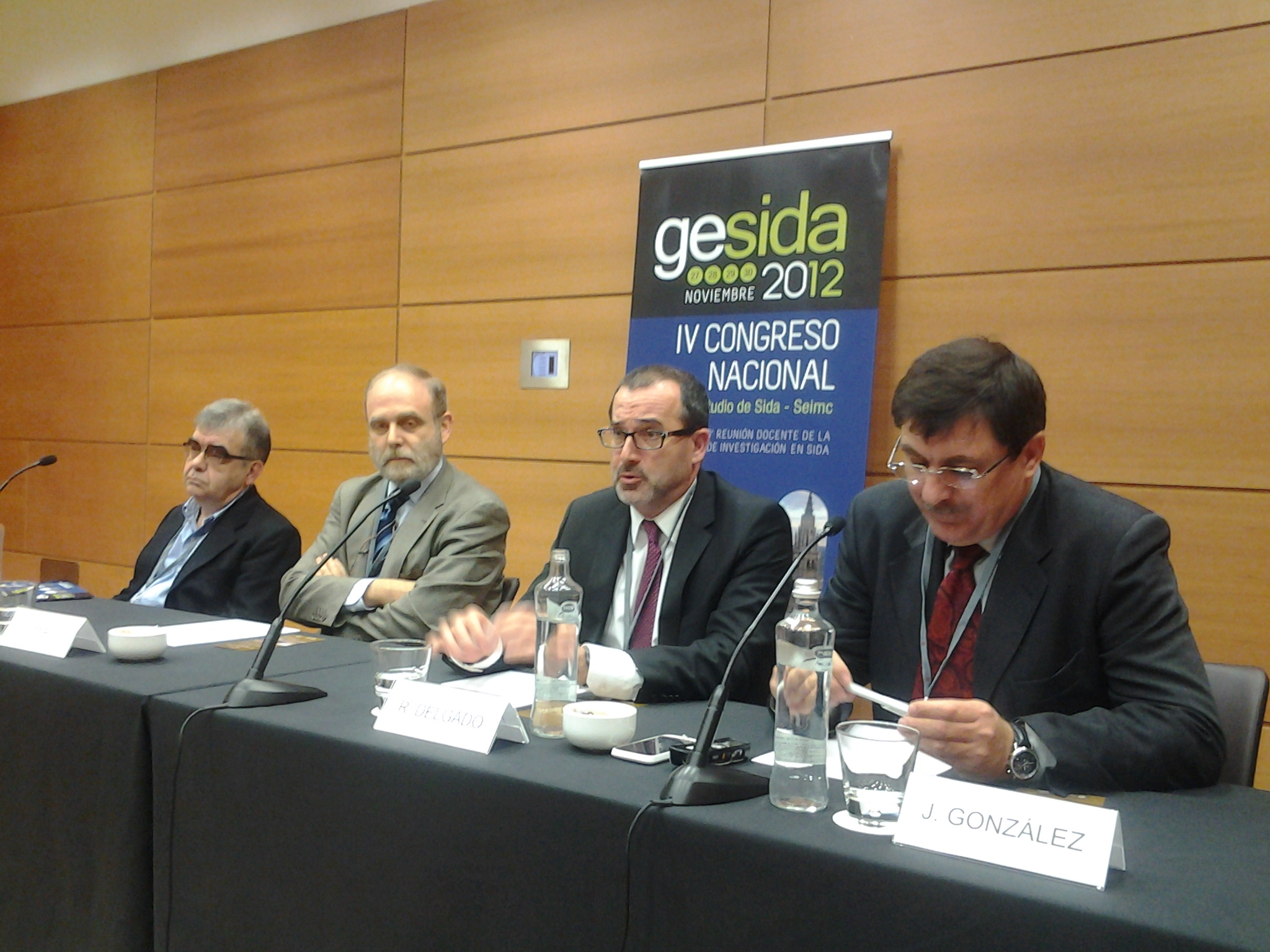 Pie de foto. De izquierda a derecha: Pere Domingo, presidente de GeSIDA; José Maria Miró, vicepresidente de SEIMC; Rafael Delgado y Juan González, copresidentes de IV Congreso Nacional de GeSIDA.
