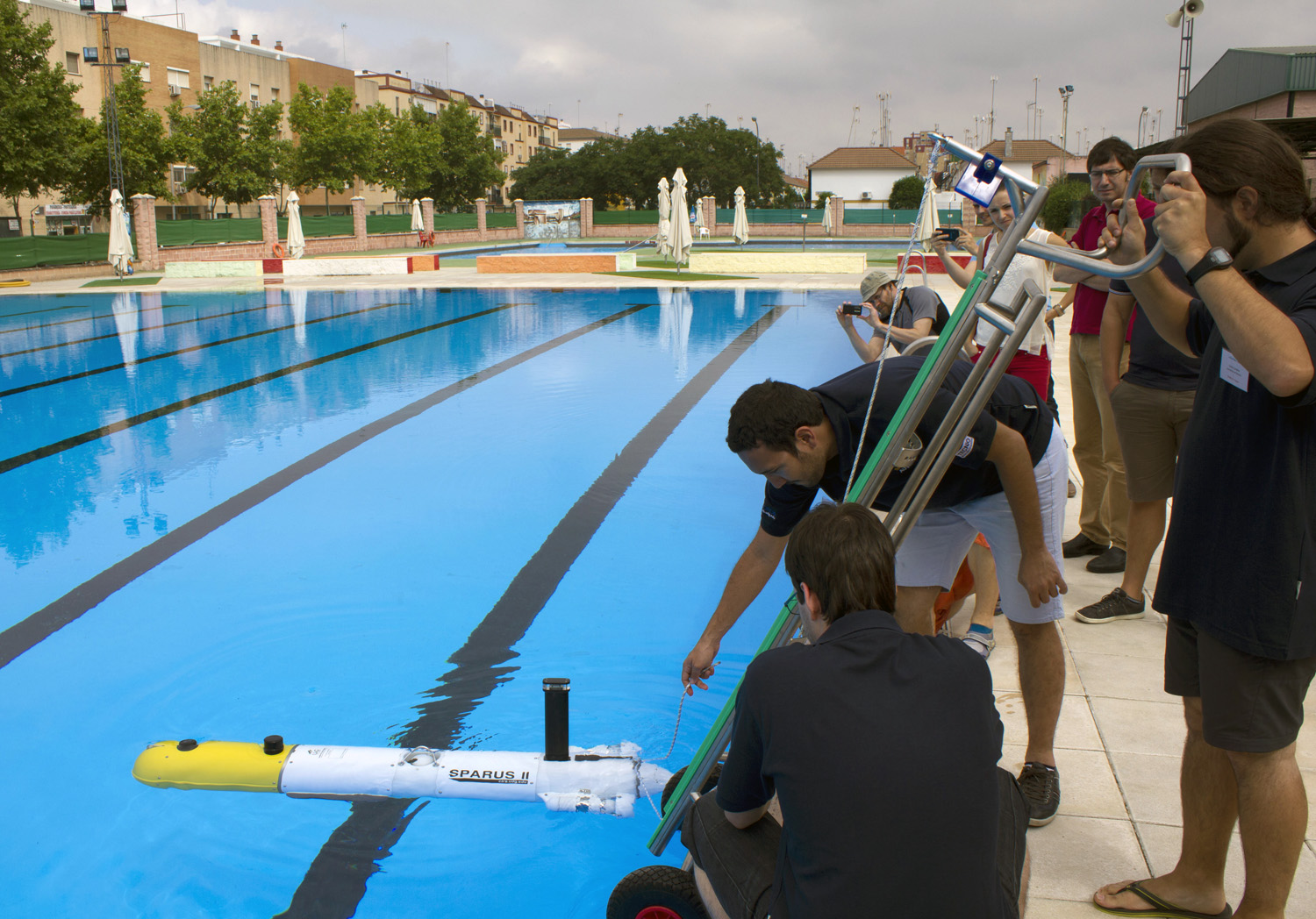 Esta última demostración de robótica submarina ha tenido lugar hoy en la piscina olímpica del Club Vistazul de Dos Hermanas y se ha llevado a cabo por investigadores del Centro de Investigación de Robótica Submarina (CIRS) de la Universidad de Gerona , liderados por el profesor Marc Carreras. Esta actividad ha servido para demostrar las capacidades del sistema acuático, que ha realizado un mapeado del fondo de la piscina utilizando un sensor sónar y otras tareas de inspección.