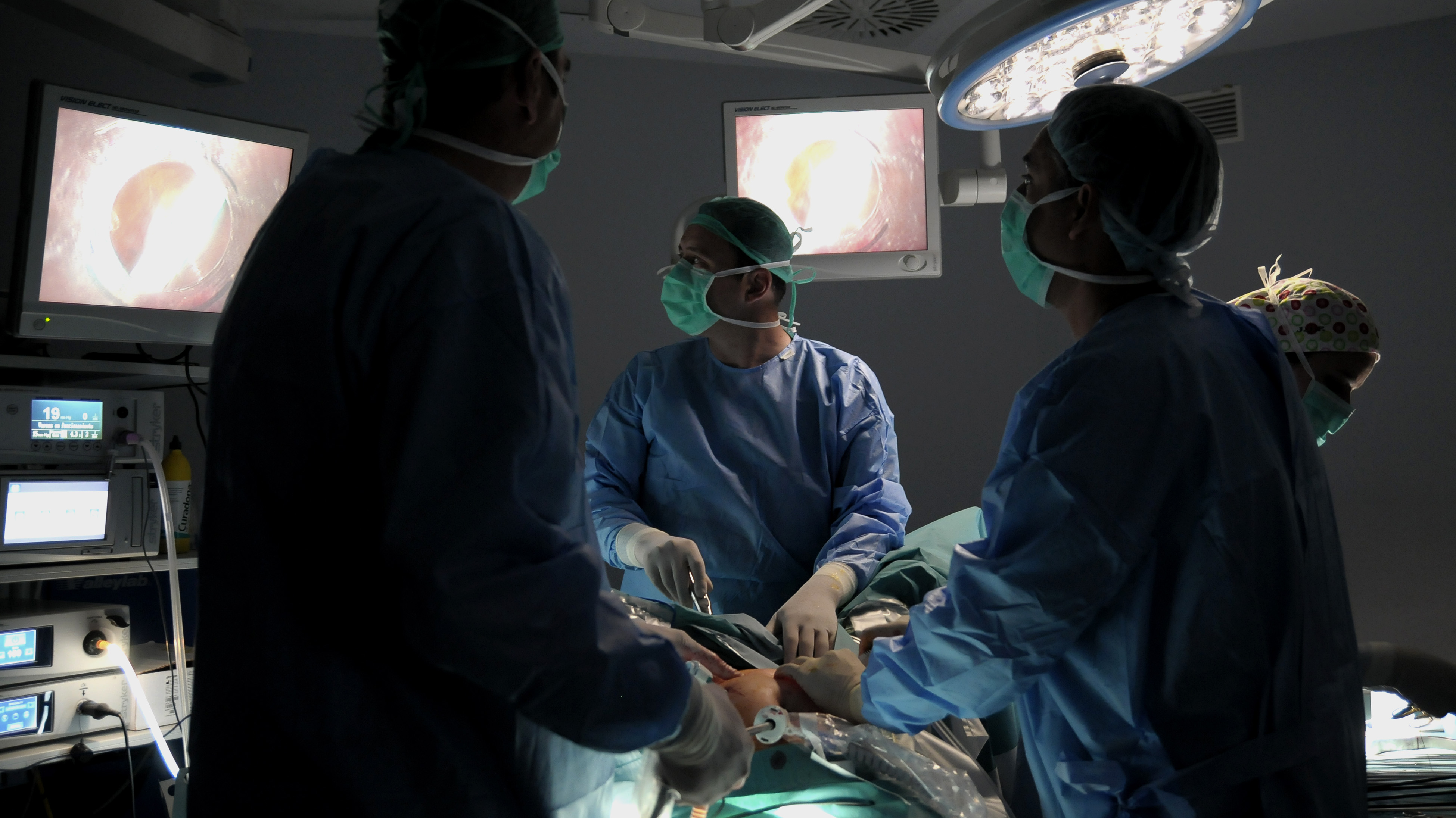 PIE DE FOTO: El equipo de Innovación Urológica durante la intervención quirúrgica en los quirófanos del Hospital Santa Ángela de la Cruz.