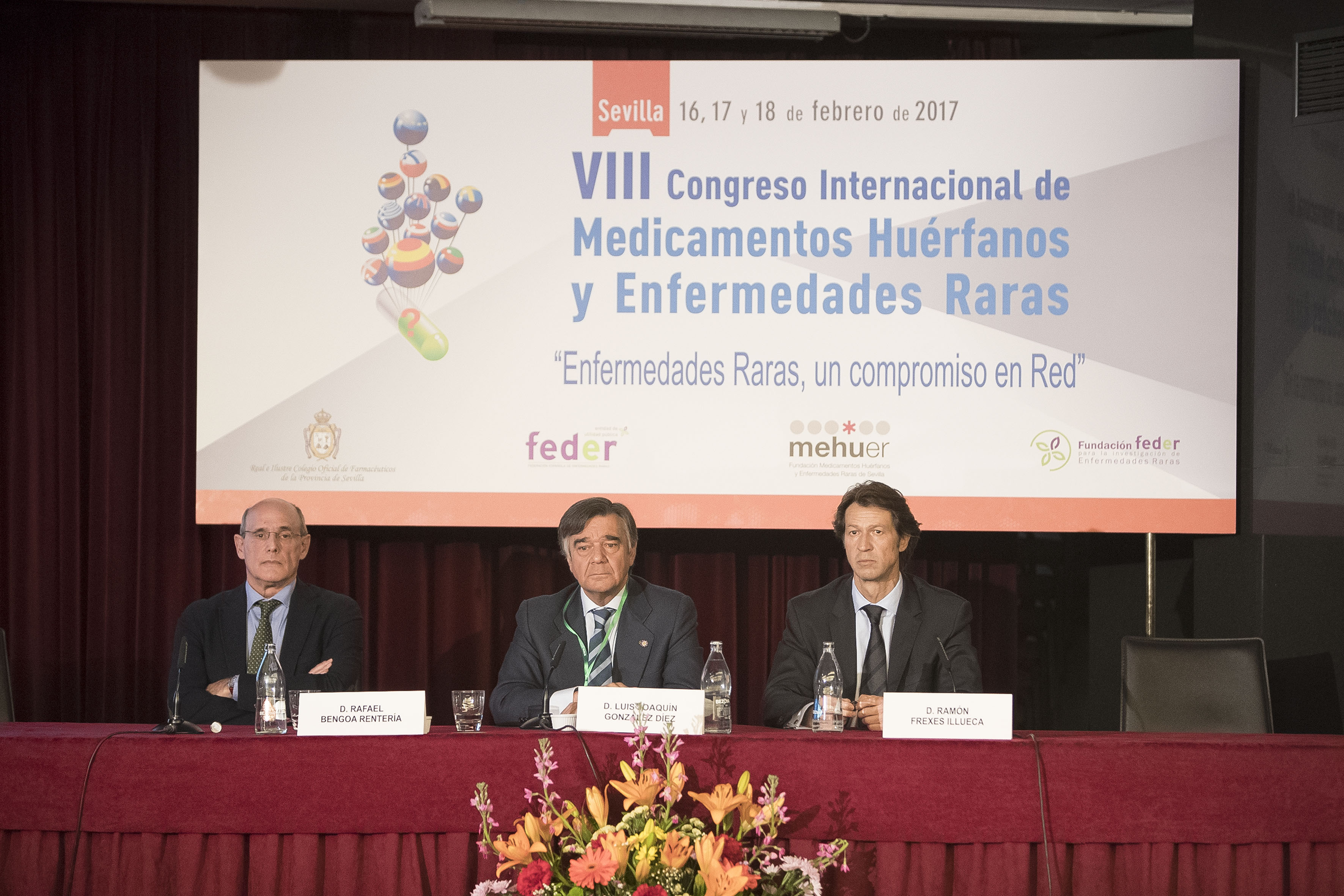 PIE DE FOTO: Los miembros de la Mesa Redonda “Acciones internacionales en Enfermedades Raras”: Ana Isabel del Moral; decana de la Facultad de Farmacia Universidad de Granada; Antoni Montserrat; Comisión Europea, Dirección General de Protección de la Salud y Consumo; Enrique Terol, Comisión Europea, experto Nacional Destacado en la Unidad de Sistemas Sanitarios, Dirección General de Salud y Consumidores; y Juan Carrión Presidente de la Federación Española de Enfermedades Raras y presidente de la Alianza Iberoamericana de Enfermedades Raras (ALIBER).