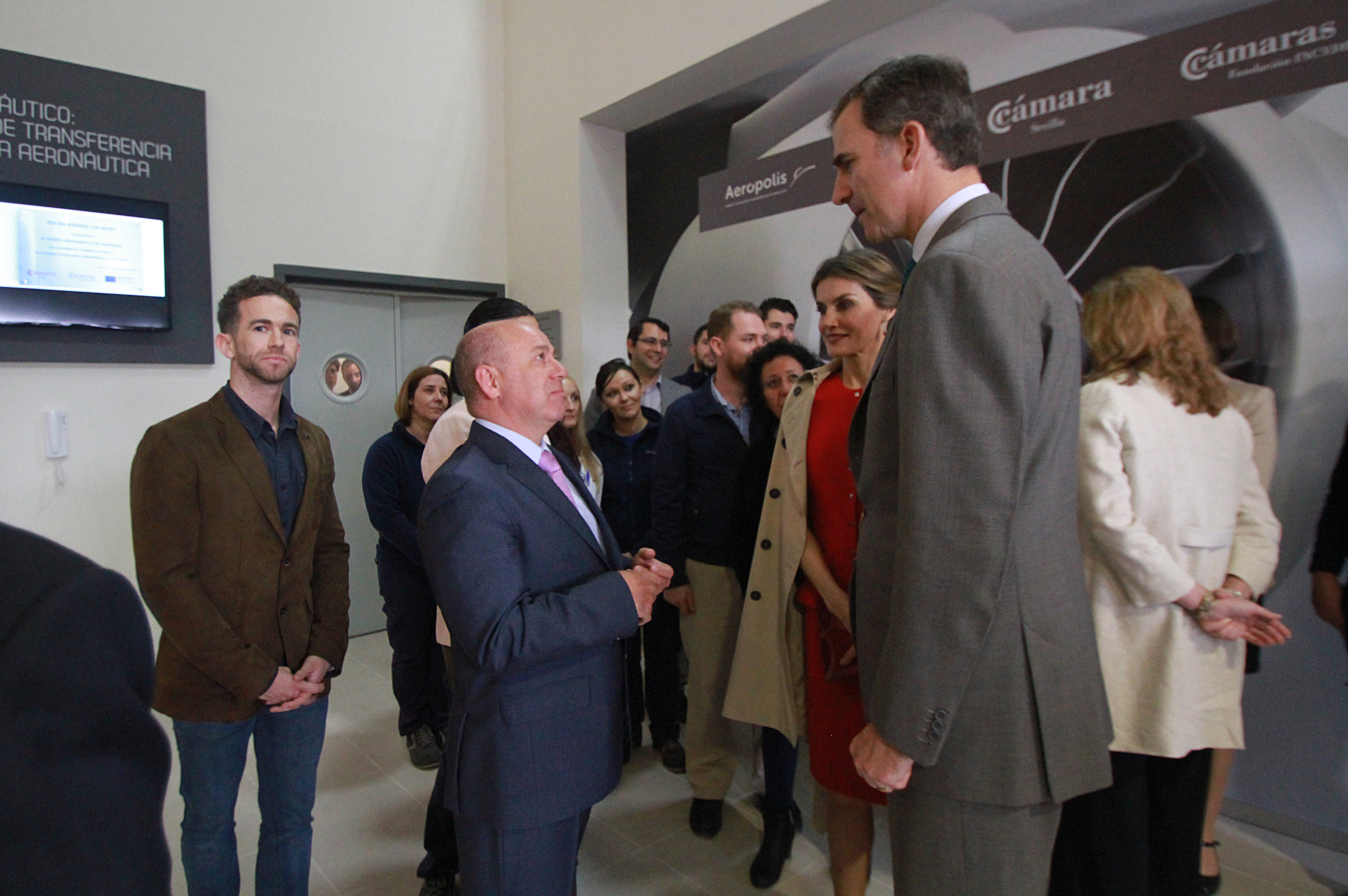 La plantilla al completo de esta firma del cluster aeroespacial andaluz ubicada en Aerópolis ha tenido la oportunidad de saludar a SS.MM. en la visita que éstos han hecho al Parque.