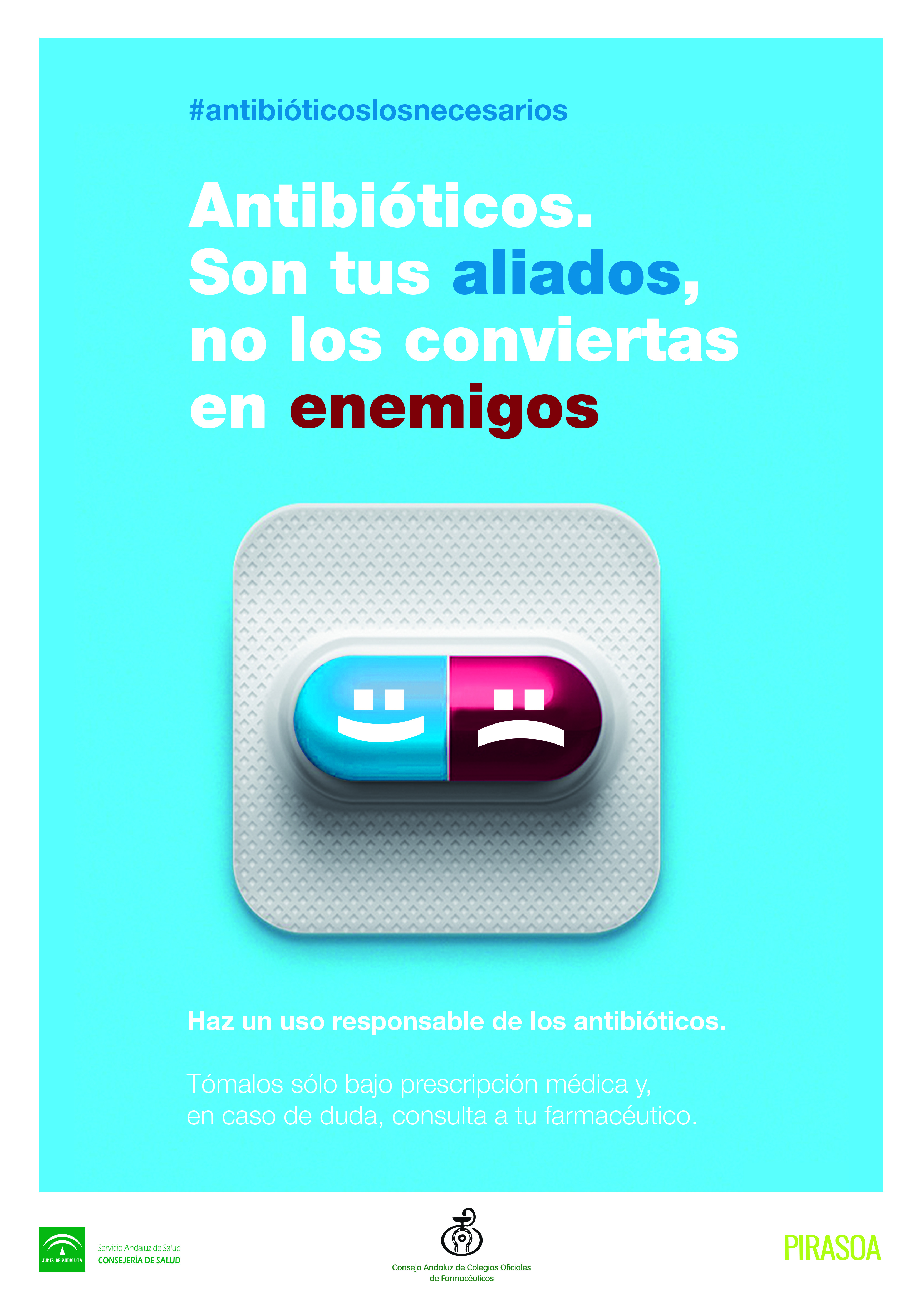 Sevilla, 31 de enero de 2017.- La Farmacia andaluza va a sumarse al programa Pirasoa puesto en marcha por la Consejería de Salud de la Junta de Andalucía con el objetivo de lograr un correcto uso de los antibióticos que evite la aparición de resistencias bacterianas. Con el hashtag #antibióticoslosnecesarios, el Consejo Andaluz de Colegios de Farmacéuticos ha puesto en marcha una campaña que advertirá a los pacientes y usuarios de las farmacias andaluzas que “si toman antibióticos cuando no lo necesitan, dejarán de servirles cuando lo necesiten”, informándoles que alrededor de 2.500 personas mueren al año en España por infecciones causadas por bacterias resistentes a los antibióticos.