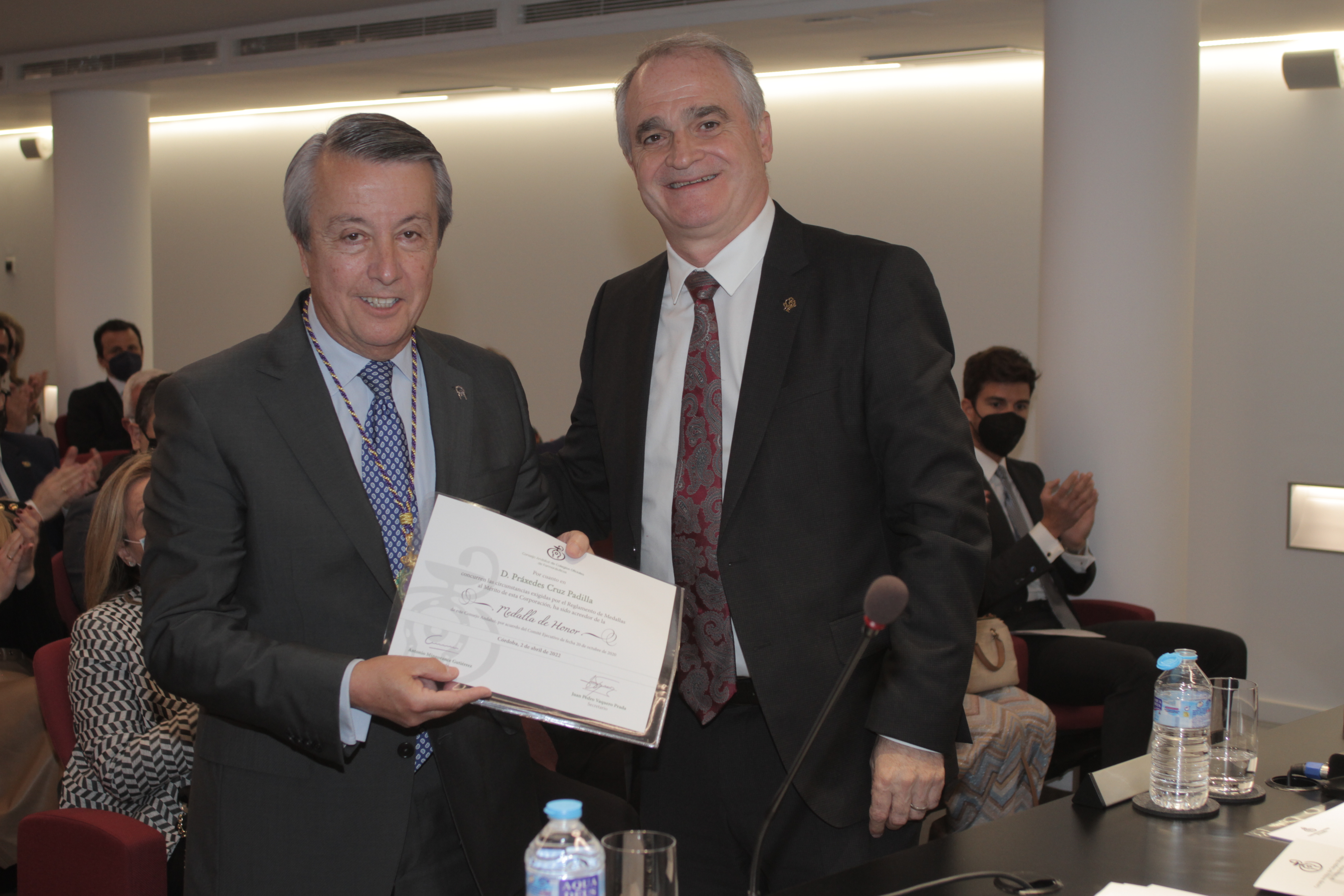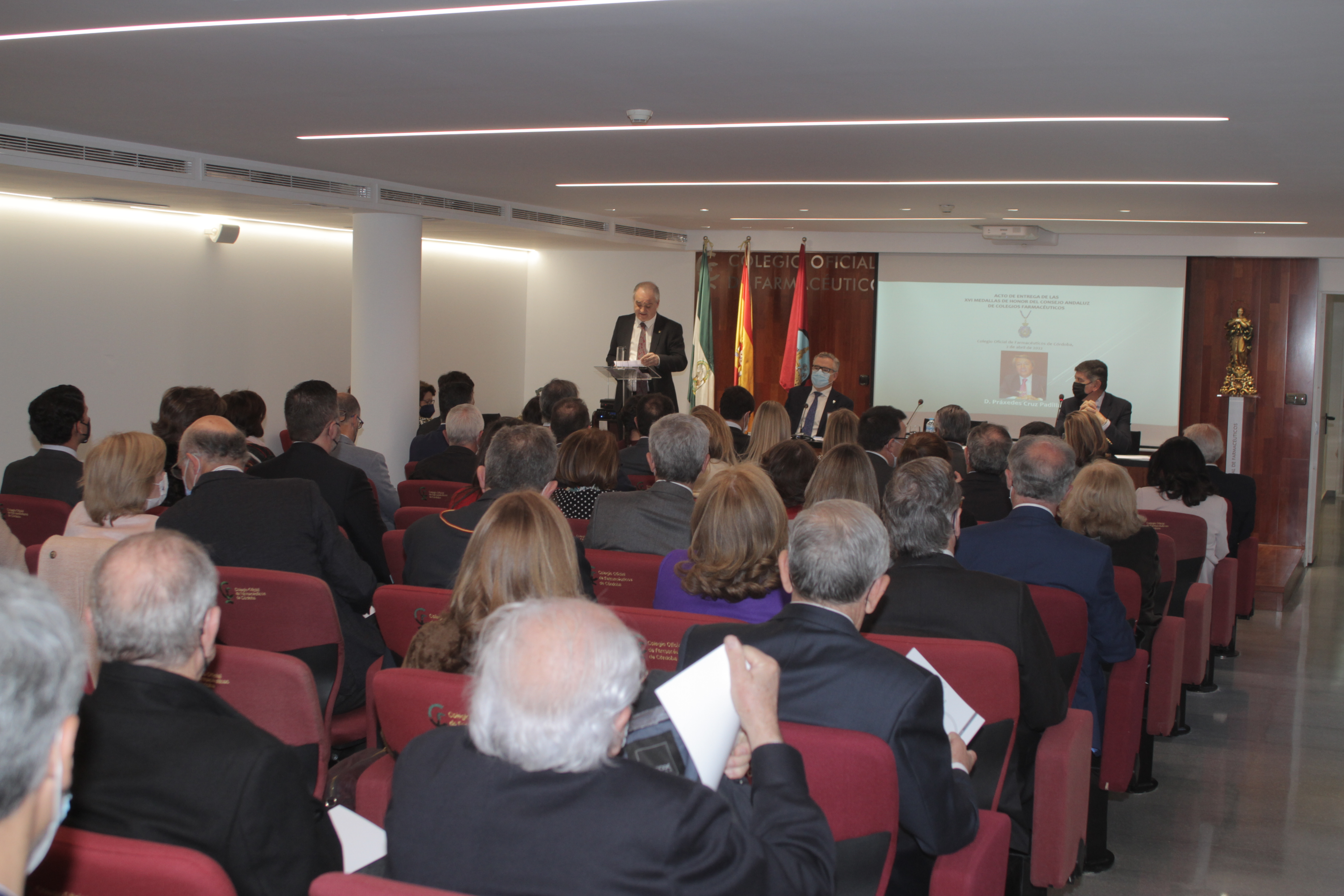 Córdoba, 2 de abril de 2022.- El Consejo Andaluz de Colegios Oficiales de Farmacéuticos (CACOF) ha hecho entrega de su máxima distinción, la Medalla de Honor, a Práxedes Cruz Padilla, quien fuera presidente del Colegio de Farmacéuticos de Córdoba desde 2011 hasta 2019.