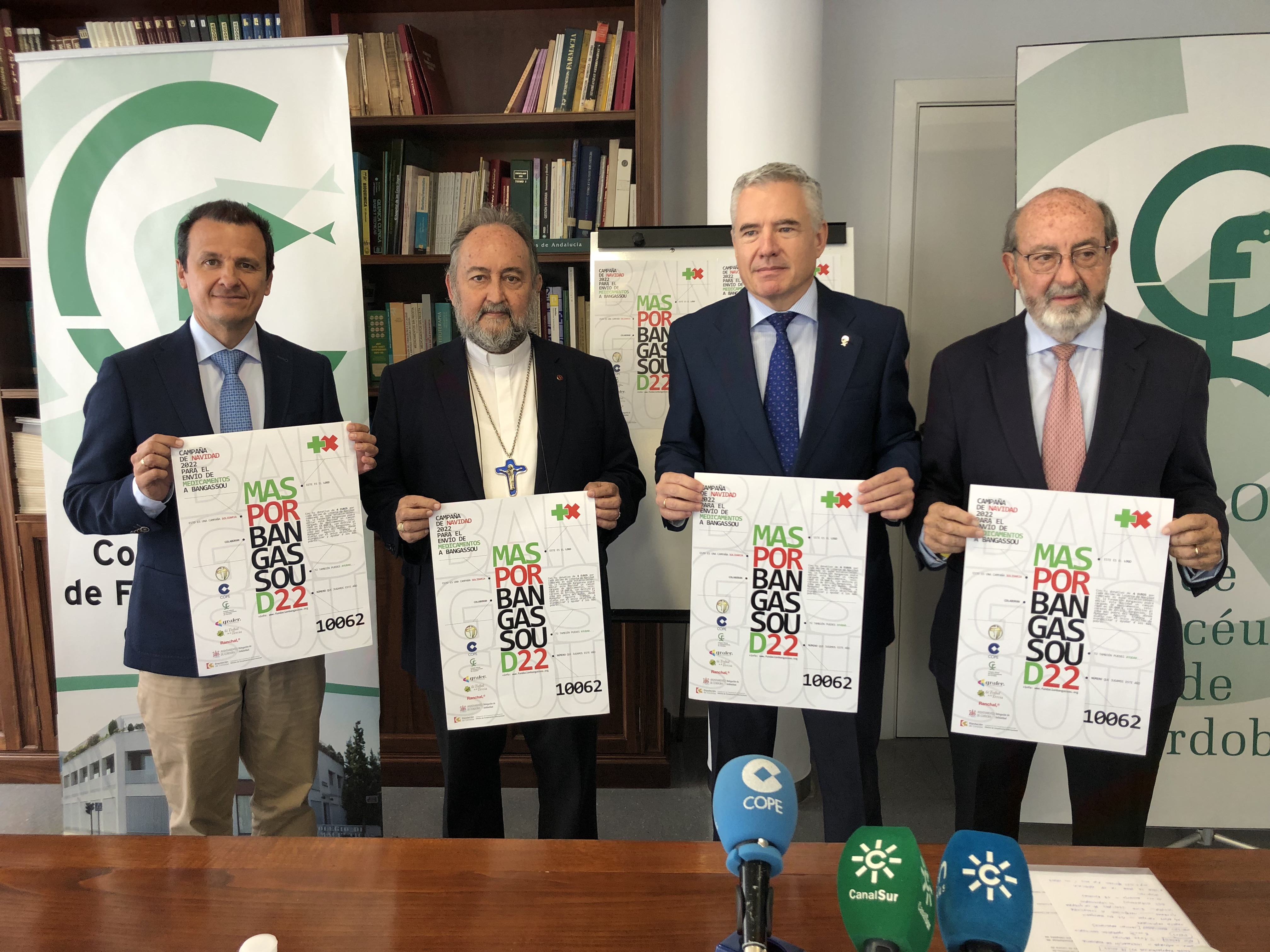Córdoba, 11 de octubre de 2022.- El Colegio de Farmacéuticos de Córdoba ha presentado hoy su colaboración, un año más, en la campaña de ayuda sanitaria a Bangassou, en la República Centroafricana, que lidera la Fundación Bangassou, ONG cordobesa comprometida con la ayuda a esta región africana del mismo nombre y bajo el protectorado de la Diócesis de la que es obispo el cordobés monseñor Juan José Aguirre, quien en esta ocasión ha tenido la oportunidad de participar en la presentación de esta campaña.