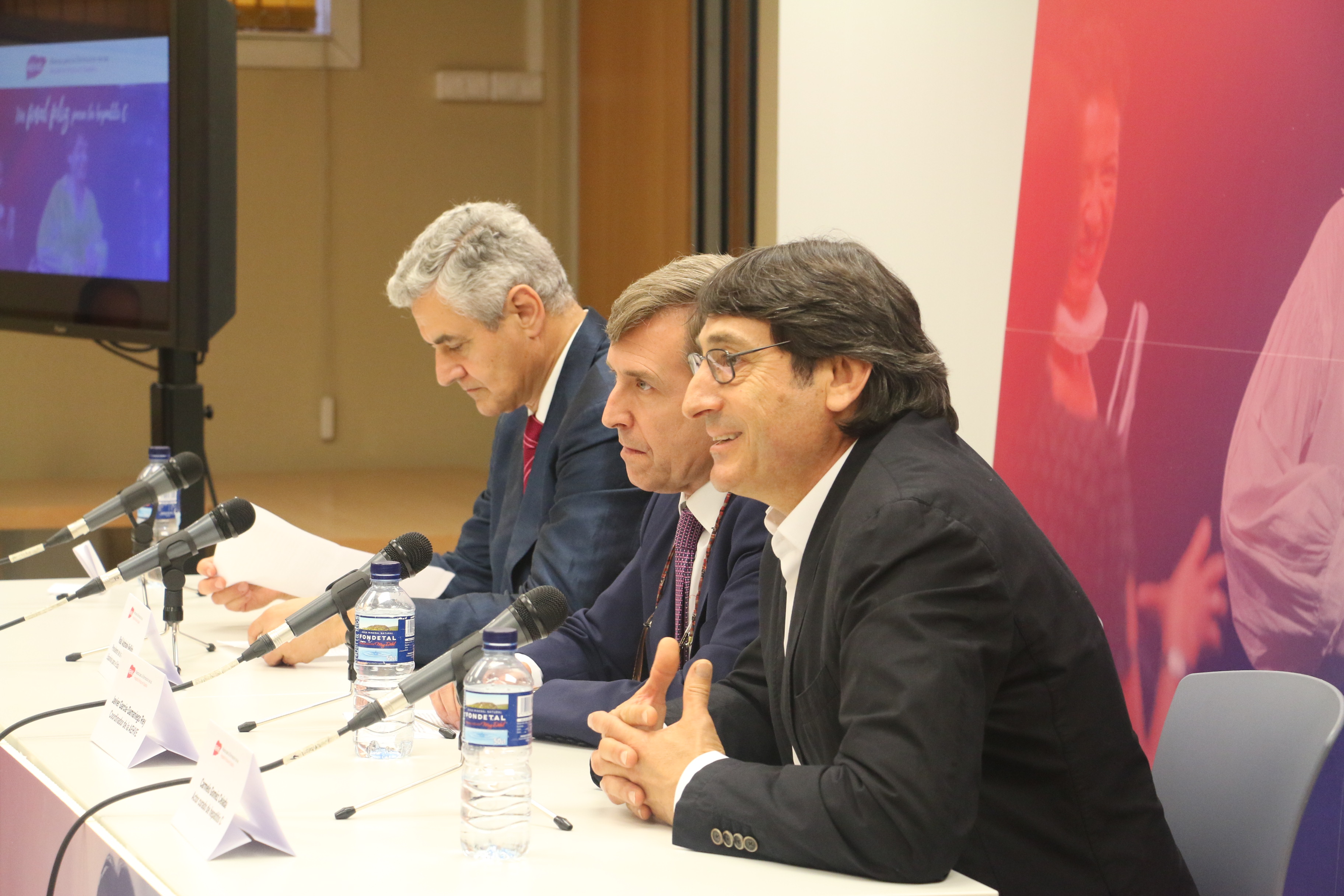 PIE DE FOTO. De izquierda a derecha: Raúl Andrade, presidente de la Asociación Española para el Estudio del Hígado; Faustino Blanco, secretario general de Sanidad y Consumo; Javier García-Samaniego, coordinador de la Alianza para la Eliminación de las Hepatitis Víricas en España; y Carmelo Gómez, actor curado de hepatitis C.