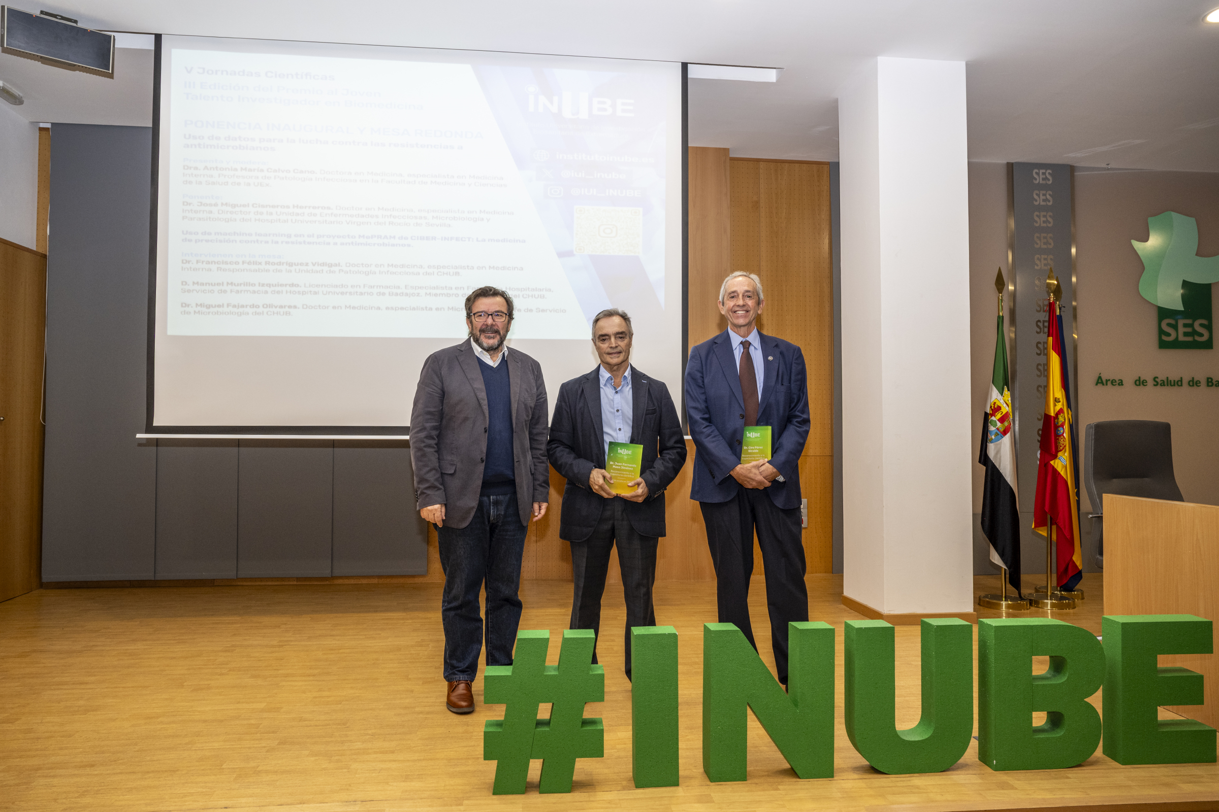 “El mérito sin duda hay que atribuirlo a los cerca de 350 investigadores que con vinculación al Sistema Extremeño de Salud, a la Universidad de Extremadura o a ambos, integran las unidades de investigación que forman parte del INUBE”, ha destacado Llerena en el Homenaje a la Trayectoria Científica Senior que el Instituto ha otorgado hoy a tres de sus investigadores más reconocidos: los doctores Juan Fernando Masa, Ciro Pérez y Emilio Doblaré.