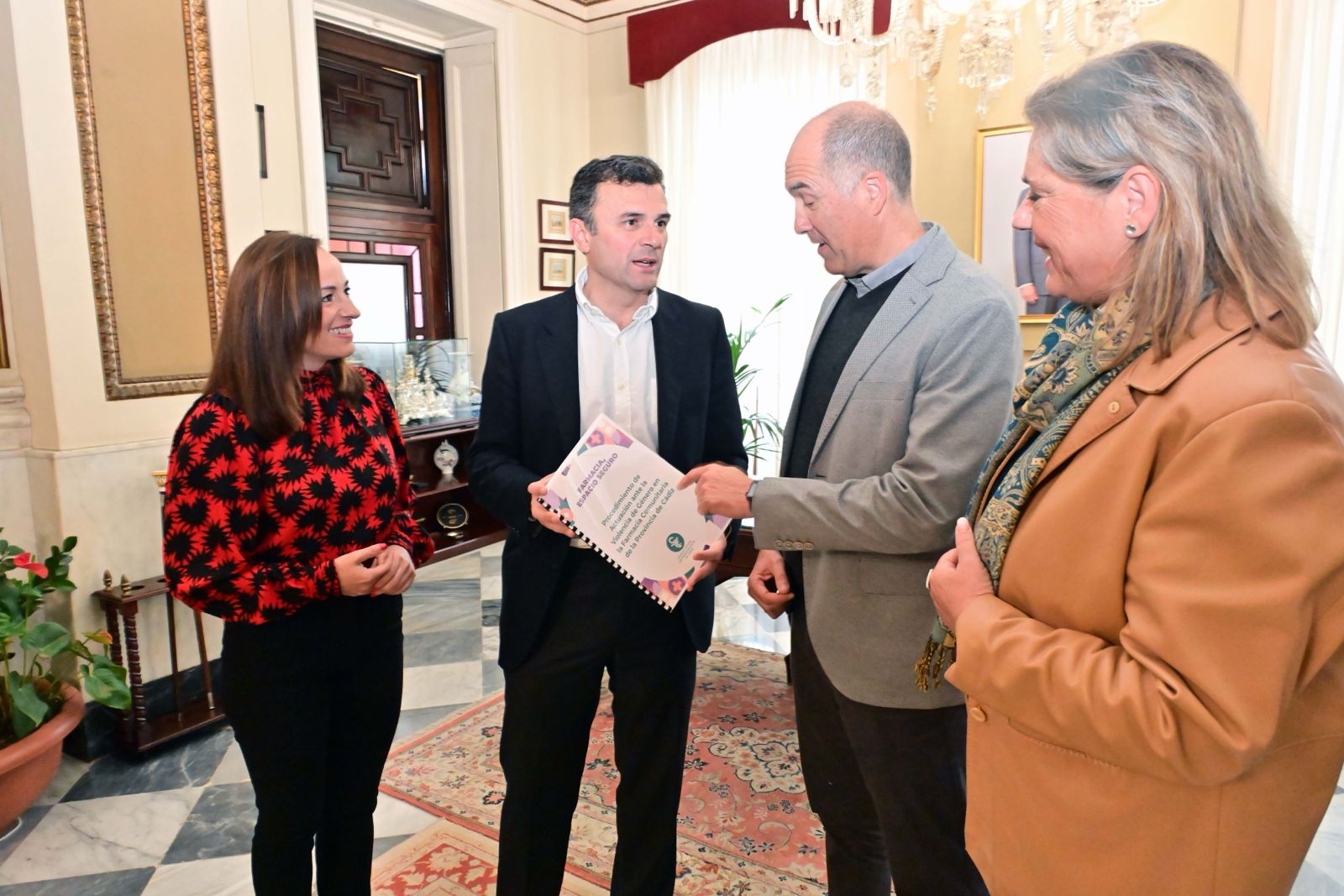 Por este motivo, el presidente del Colegio de Farmacéuticos de Cádiz, Alberto Virués, y la vocal de Farmacia Social y Relaciones con Asociaciones de Pacientes de esta corporación, Lola Palomino, han mantenido una reunión con el alcalde de Cádiz, Bruno García, y su delegada de Igualdad, Virginia Martín, en la que les han expuesto los pormenores de la iniciativa ‘Farmacia, Espacio Seguro’, puesta en marcha a finales de este pasado año y por la que las farmacias de toda la provincia quieren aportar su cercanía, capilaridad y accesibilidad ante el reto de la violencia de género en cualquier momento del año poniendo especial atención a las fiestas, donde se produce una mayor congregación de personas, de ahí la importancia de este encuentro de cara a los próximos días festivos que vivirá la ciudad de Cádiz.