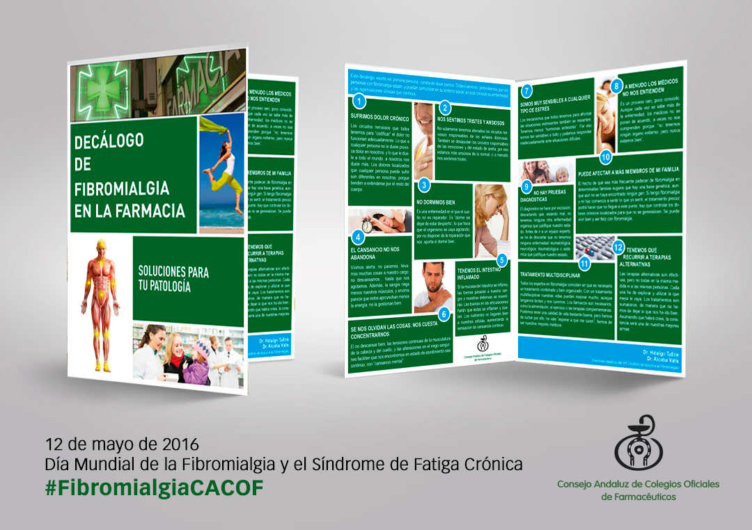 Entre los materiales elaborados con motivo de esta campaña destaca la edición de un díptico con un decálogo en el que, de manera muy resumida y fácilmente entendible, se recoge información de interés sobre la FM (tales como síntomas y los tratamientos más habituales) con el fin de favorecer un mejor conocimiento de la enfermedad, habitualmente confundida con otras dolencias.