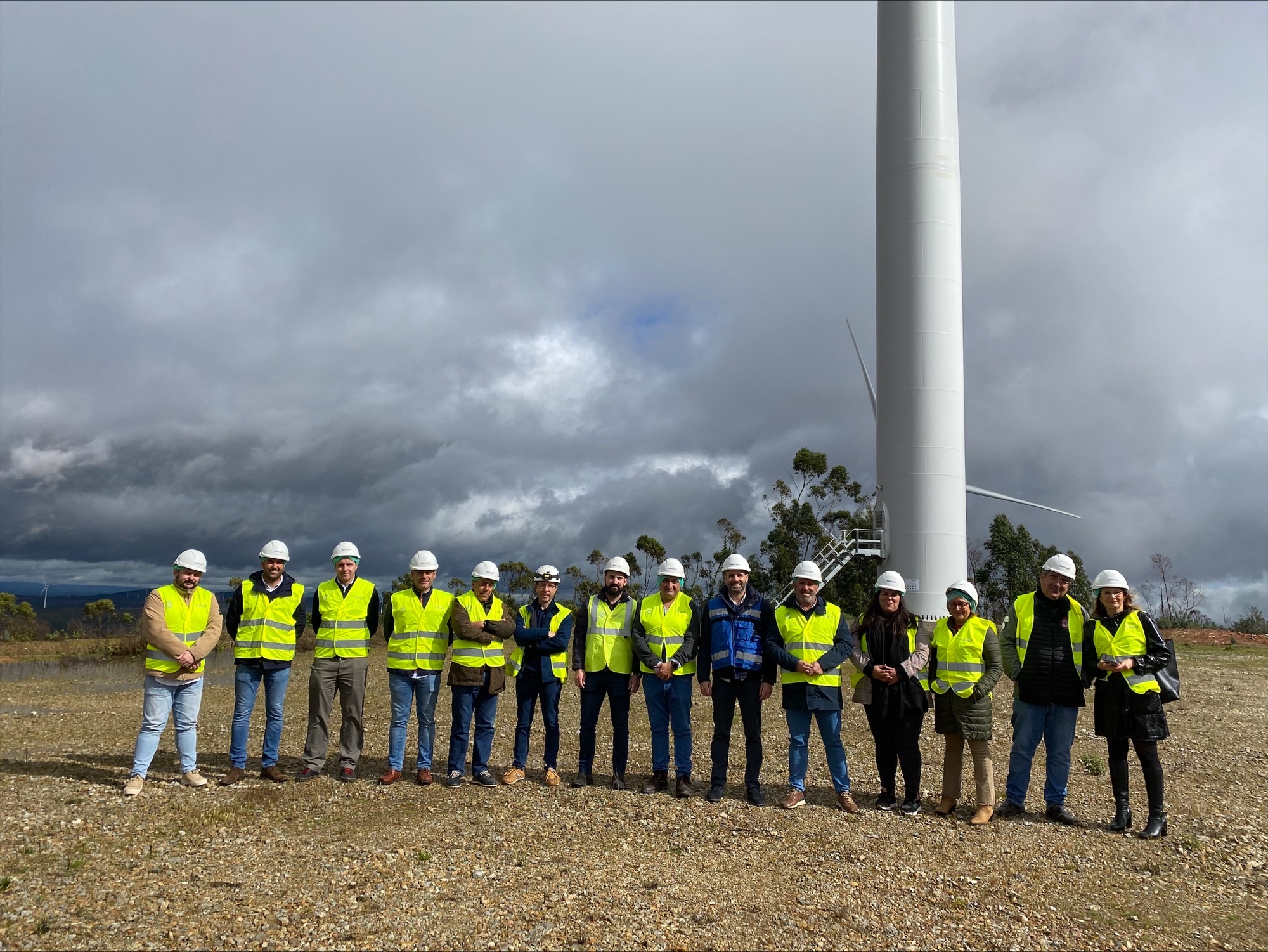 Alcaldes y representantes locales de la Mancomunidad de Beturia han llevado a cabo una visita al parque eólico El Almendro para conocer de cerca el funcionamiento de la instalación.