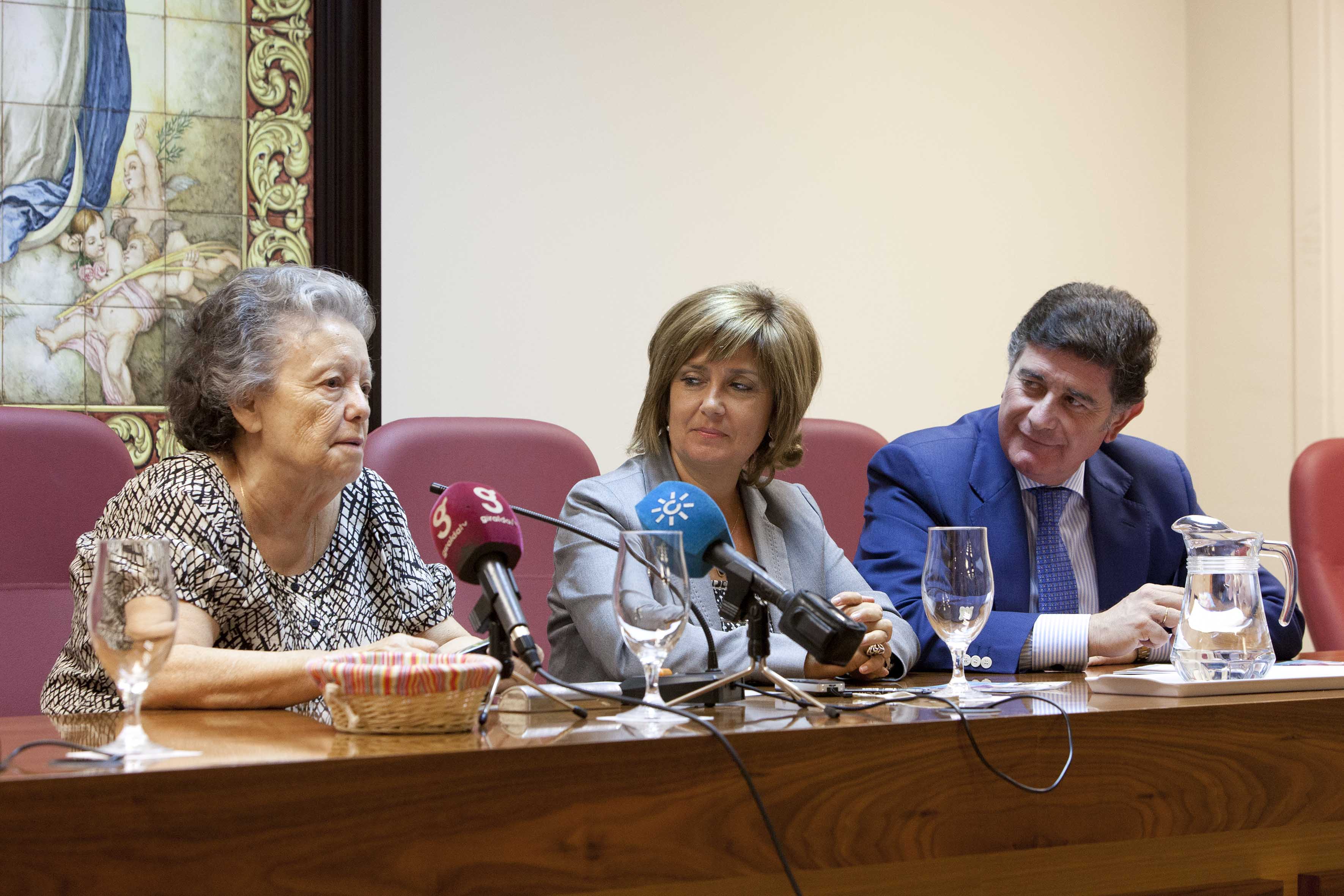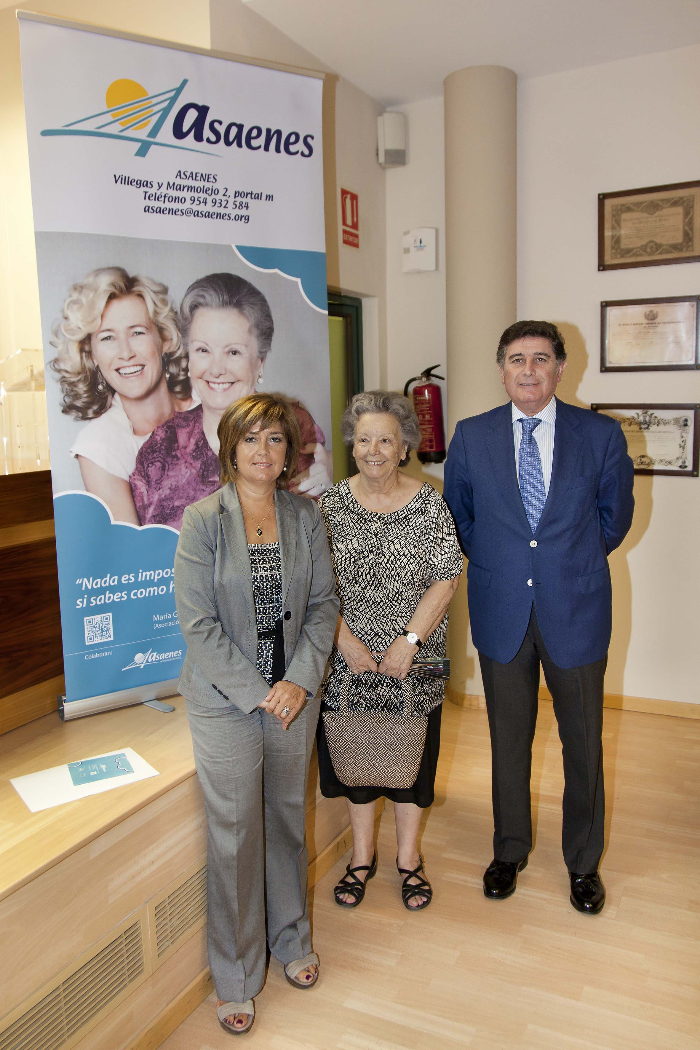 Pie de foto. De izquierda a derecha: María Galiana, actriz y colaboradora de ASAENES; Rocío Lozano, presidenta de ASAENES; y Manuel Pérez, presidente del Colegio Oficial de Farmacéuticos de Sevilla.
