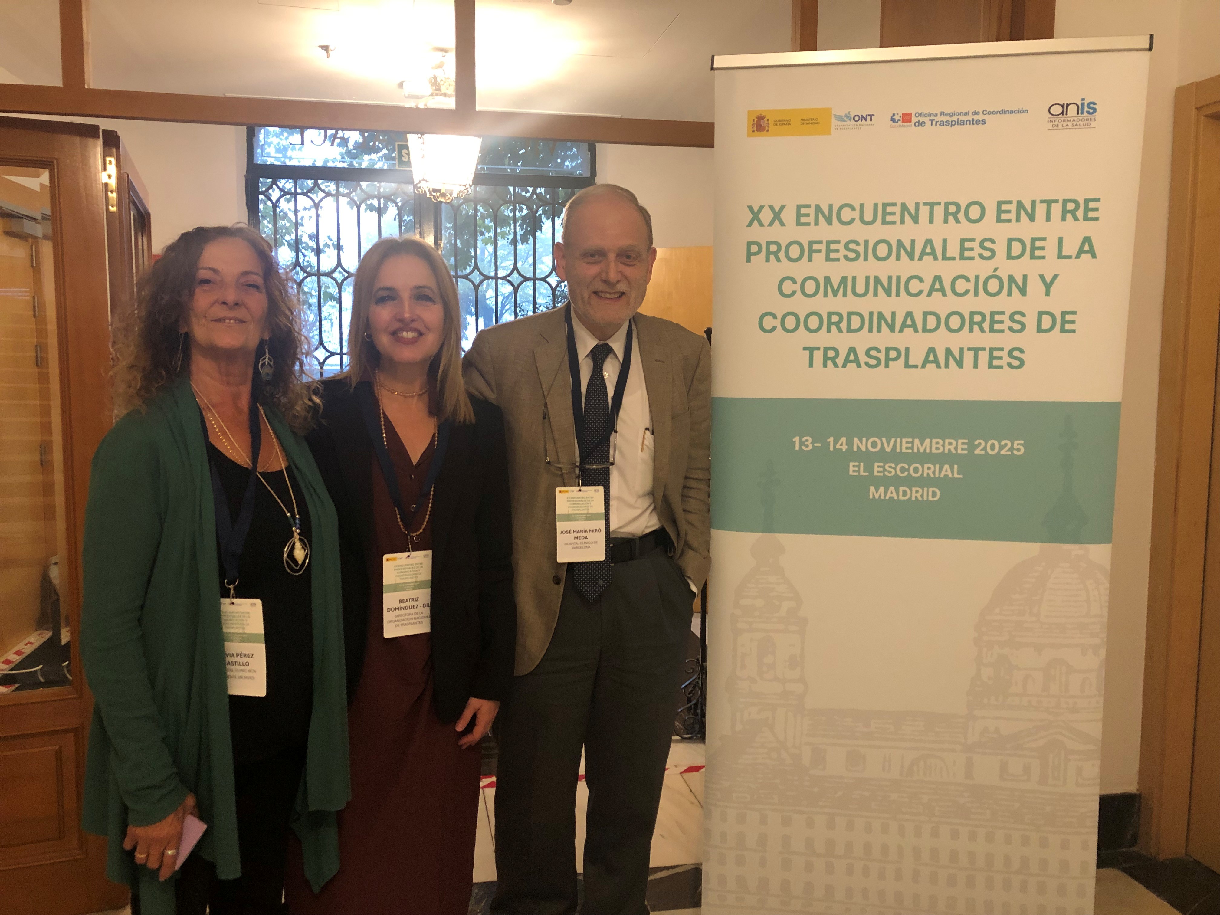 PIE DE FOTO: El Dr. José María Miró, junto a la directora de la Organización Nacional de Trasplantes (ONT), Beatriz Domínguez-Gil y Silvia Pérez, paciente trasplantada.