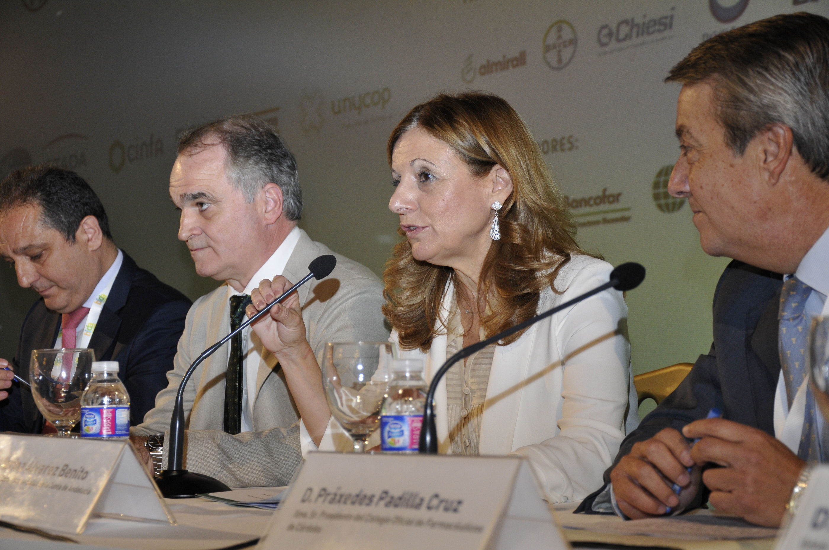 PIE DE FOTO. De izquierda a derecha: Juan Pedro Rísquez, vicepresidente del Consejo General de Colegios Oficiales de Farmacéuticos; Antonio Mingorance, presidente del Consejo Andaluz de Colegios Oficiales de Farmacéuticos; Marina Álvarez, consejera de Salud de la Junta de Andalucía; Práxedes Padilla, presidente del Colegio Oficial de Farmacéuticos de Córdoba; y Isaac Túnez, vicerrector de Personal de la Universidad de Córdoba