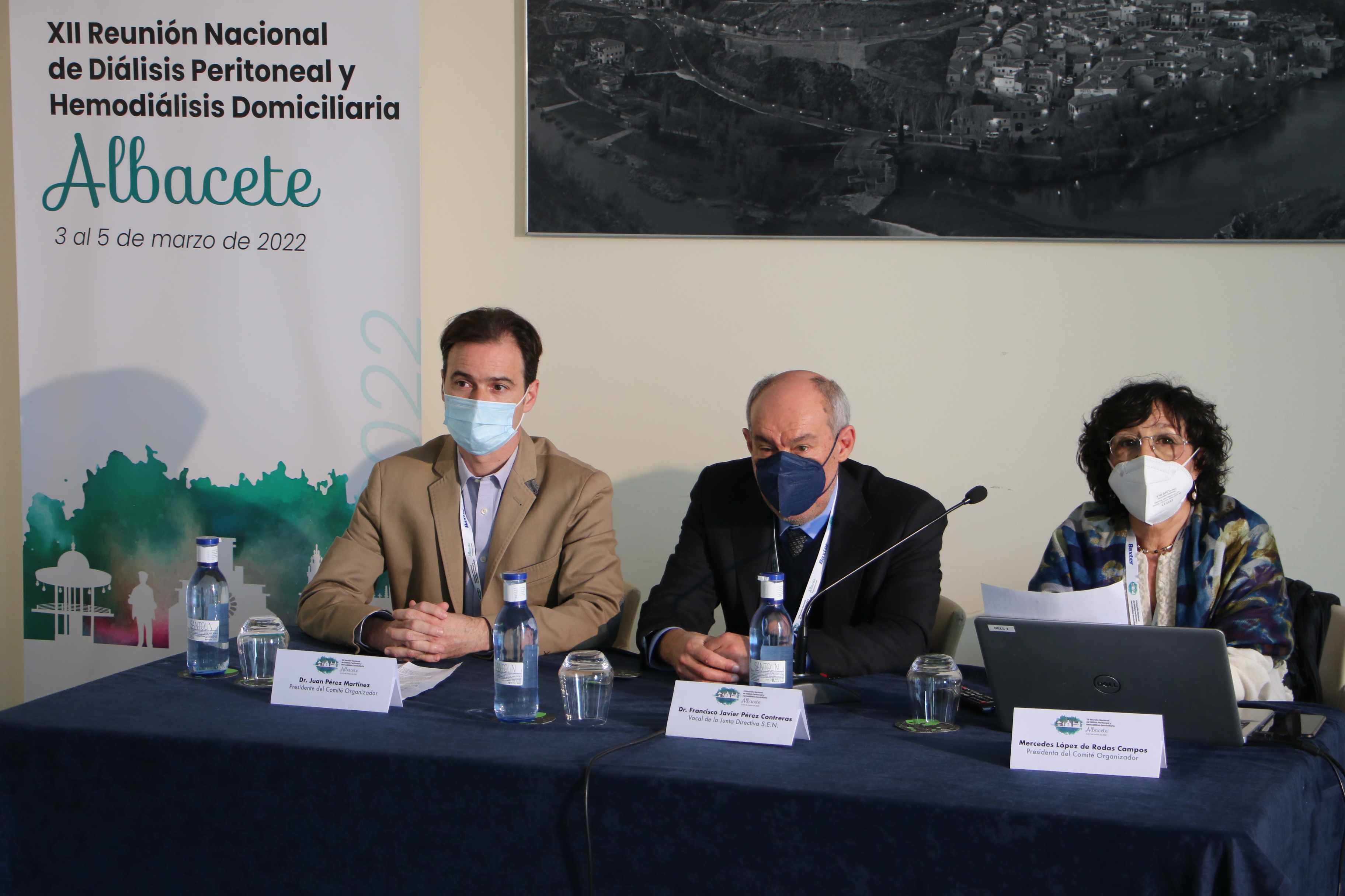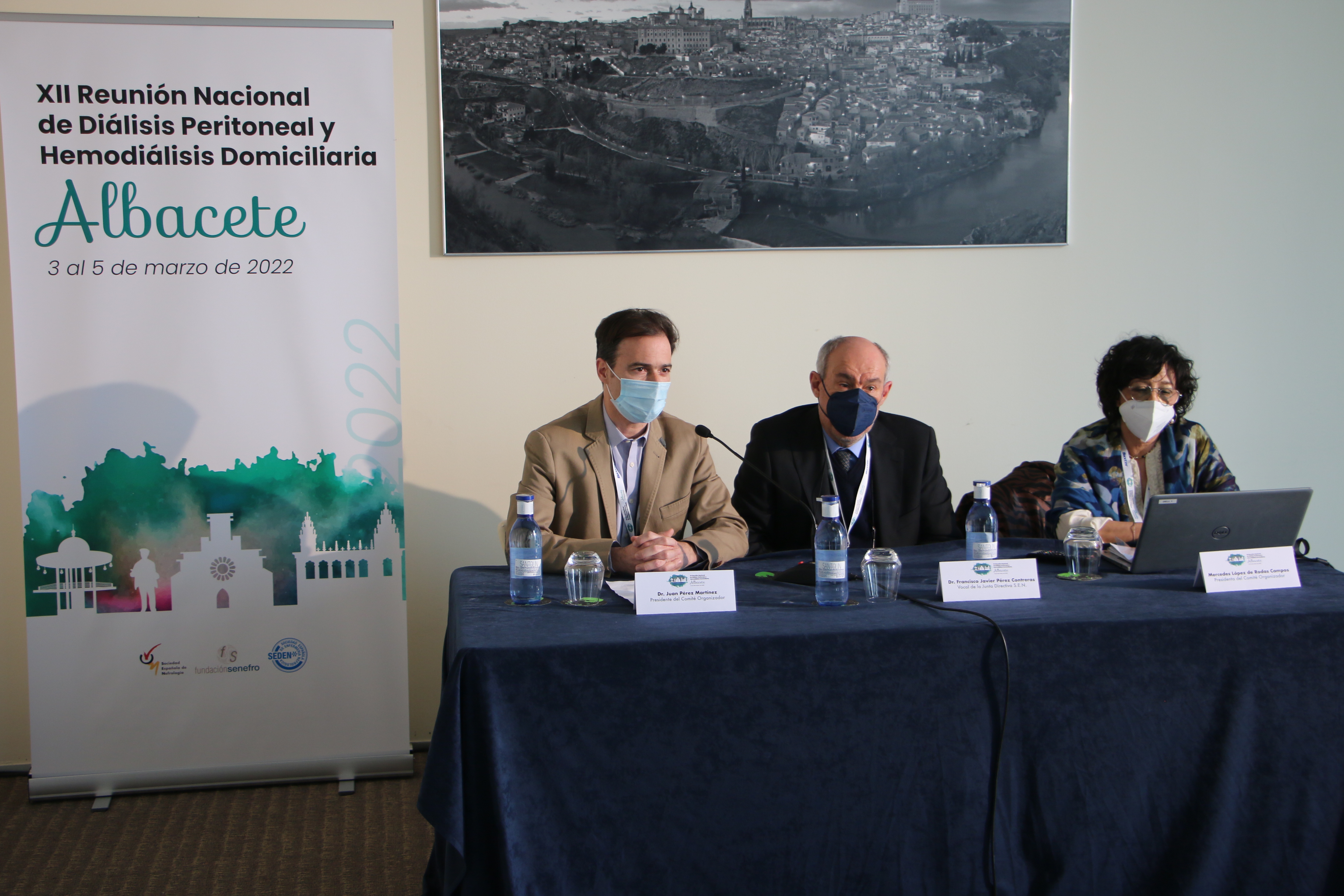 PIE DE FOTO: de izquierda a derecha; Juan Pérez Martínez; nefrólogo del Servicio de Nefrología del Complejo Hospitalario Universitario de Albacete; Mercedes López de Rodas Campos, enfermera de Diálisis del hospital albaceteño; y Francisco Javier Pérez Contreras, vocal de Diálisis Peritoneal de la Junta Directiva de la Sociedad Española de Nefrología (S.E.N.), durante la presentación de la reunión.