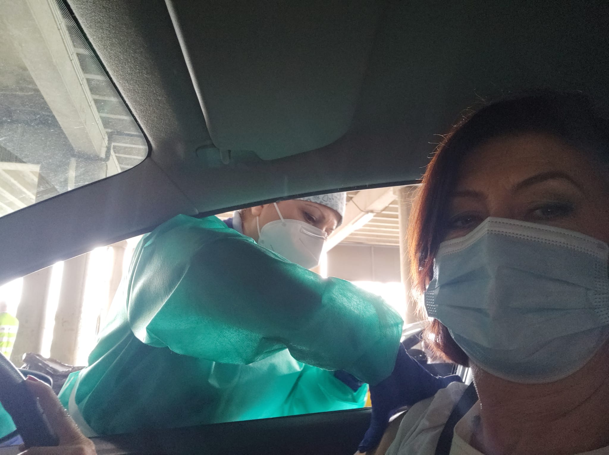 Huelva, 18 de febrero de 2021.- Los profesionales de las oficinas de farmacia onubenses han iniciado hoy el proceso de vacunación contra la COVID-19, la cual se está llevando a cabo de forma ágil en los accesos del estadio Nuevo Colombino, de modo que para la aplicación de la vacuna no es necesario que los farmacéuticos bajen siquiera de sus vehículos.
