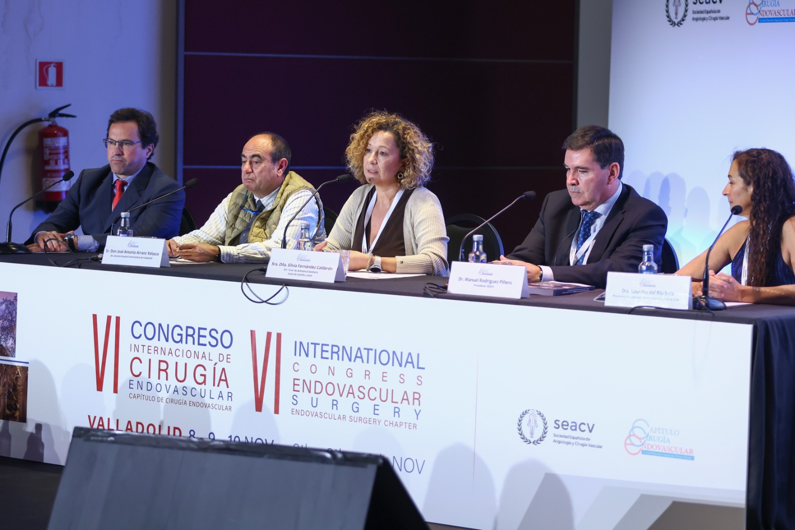 En la inauguración han participado la Dra. Silvia Fernández Calderón, Directora General de Asistencia Sanitaria de la Junta de Castilla y León; el Dr. José Antonio Arranz Velasco, Director Gerente del Hospital Universitario de Valladolid; el Dr. Rodríguez Morata, presidente del Capítulo de Cirugía Endovascular (CCEV); el Dr. Rodríguez Piñero, presidente de la Sociedad Española de Angiología y Cirugía Vascular (SEACV) y la Dra. Lourdes del Río Solá, secretaria del CCEV.