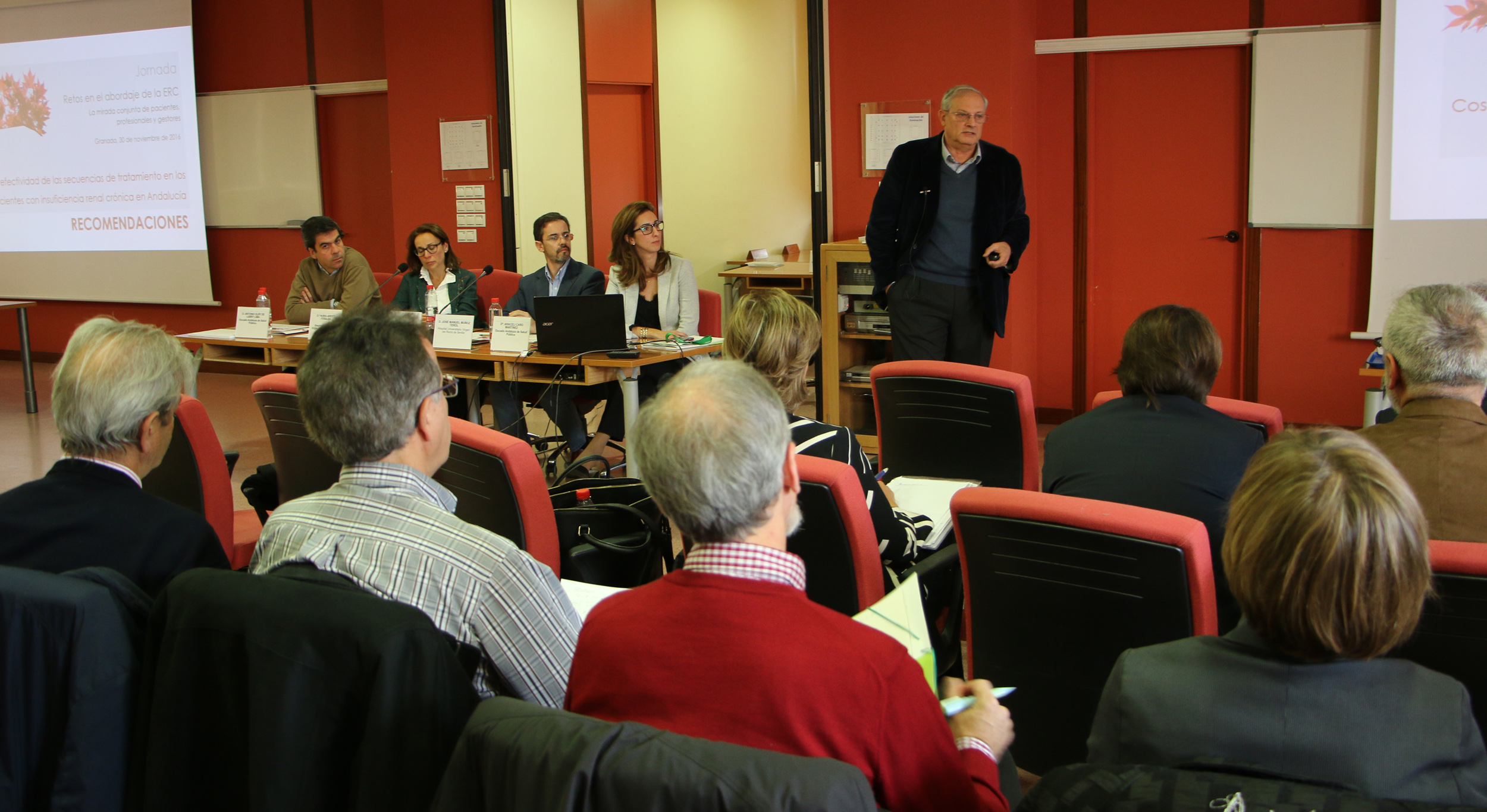 PIE DE FOTO: Una de las mesas de la jornada, en la que los ponentes presentaron el análisis del registro de pacientes Con Enfermedad Renal Crónica en Andalucía.