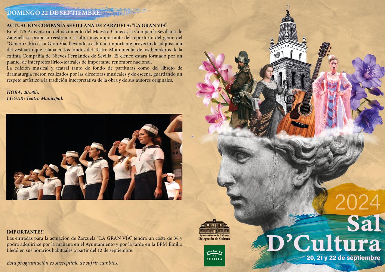Salteras 19 de septiembre – El Ayuntamiento de Salteras, en colaboración con la Diputación de Sevilla, presenta la IX Edición de Sal D'Cultura 2024, un evento que tendrá lugar del 20 al 22 de septiembre y que llega cargado de actividades para todas las edades y espectáculos musicales de primer nivel. Esta cita será el punto de encuentro para los amantes de la música, el teatro y tradiciones.