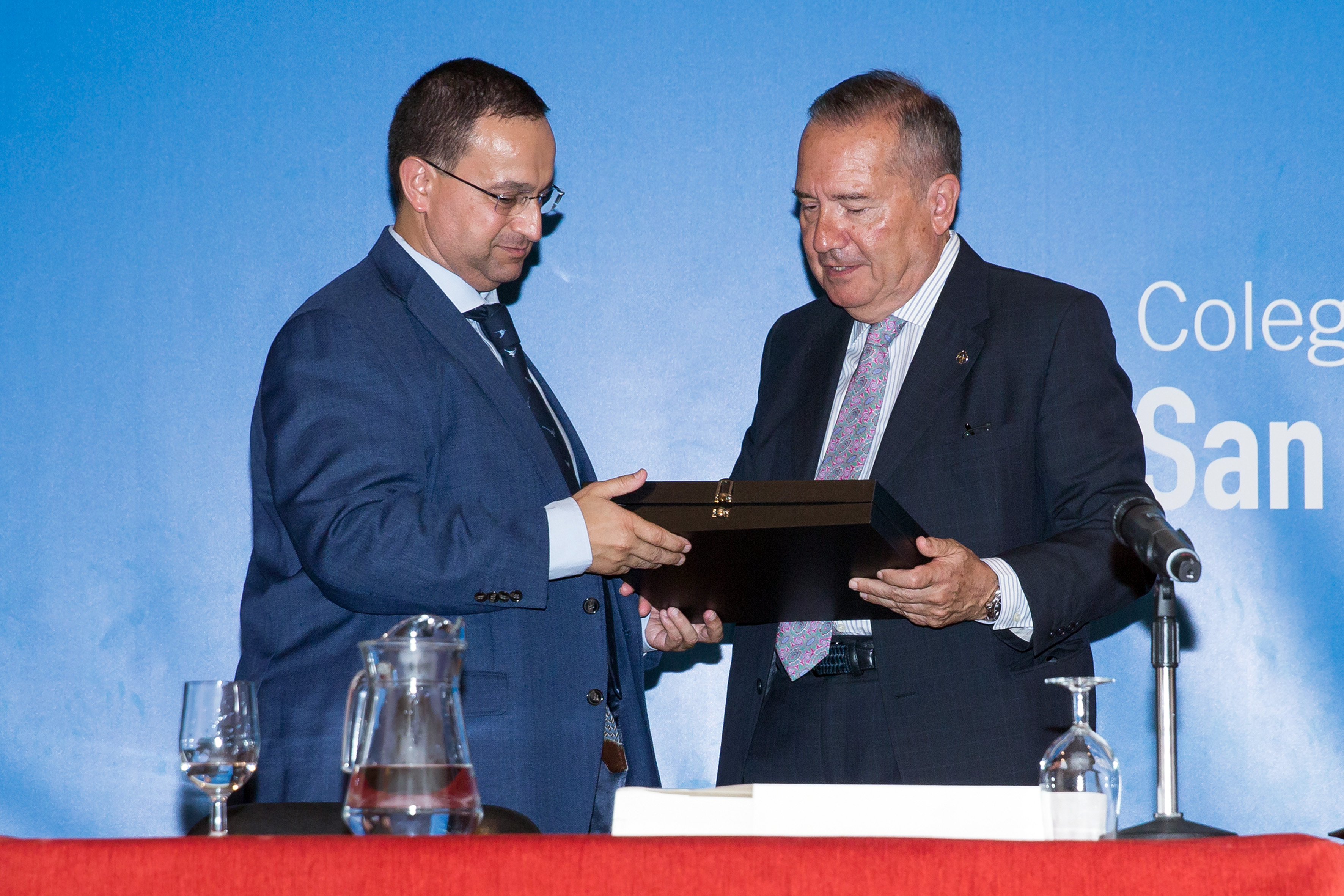 Eduardo Martínez Moya, que recibió la distinción de manos del presidente de la Asociación, Federico Argüelles, es la primera persona que recibe esta distinción sin haber cursado anteriormente sus estudios en el Colegio. La Junta Directiva de la Asociación, de esta forma, ha hecho uso del artículo 8 de sus estatutos, que señala que podrá declararse Socio de Honor a “toda aquella persona que, habiéndose destacado por sus servicios a la Asociación o al Colegio, haya sido merecedora de tal nombramiento por parte de la Asamblea General”. Estos méritos están relacionados con el trascendental papel que, como arquitecto director, ha jugado en la enorme transformación física del Centro tras unas obras ejecutadas durante 15 meses para adaptarlos a las exigencias normativas sin la interrupción de la labor docente. Entre las innumerables actuaciones ejecutadas, la Asociación pone como ejemplo la reconstrucción de la escalera histórica del edificio del siglo XVII, que se había perdido hace más de cuarenta años, y el comienzo de la recuperación del artesonado que coronaba el antiguo comedor y hoy adorna la sala más noble de la Biblioteca.