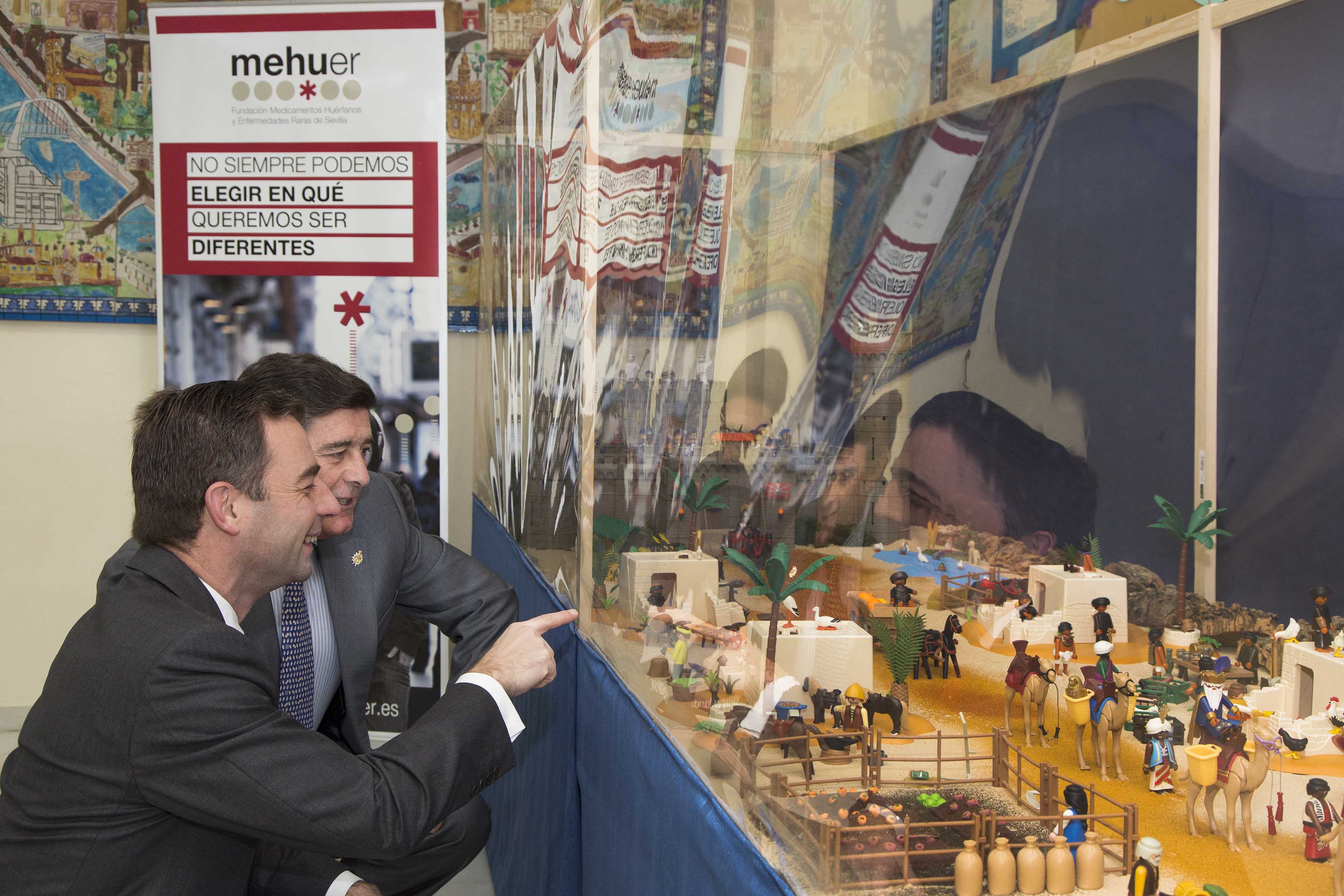 Sevilla, 10 de diciembre de 2013.- El Colegio de San Francisco de Paula acoge desde hoy y hasta el próximo viernes 20 de diciembre un belén solidario de figuras ‘clicks’ a beneficio de la Fundación Mehuer (Medicamentos Huérfanos y Enfermedades Raras). La muestra, montada por la Asociación Andaluza de Clicks e inaugurada hoy por el presidente de la Fundación, Manuel Pérez, y el director del Centro, Luis Rey, pretende recaudar fondos para continuar con las labores de investigación y mejora de las condiciones de vida de estos pacientes.