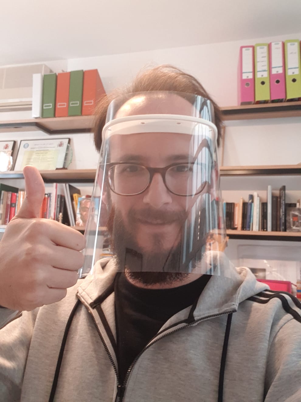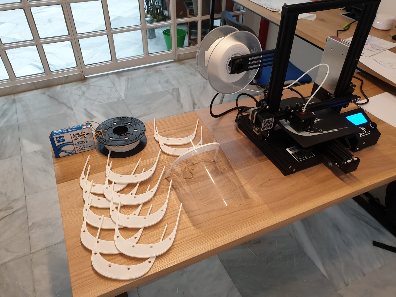 El Colegio, que dispone de impresoras 3D desde hace varios años para uso de sus profesores y alumnos durante diferentes materias relacionadas con tecnología, comenzó a colaborar en la producción 3d de viseras la pasada semana, cediendo un espacio en el Centro a la asociación sin ánimo de lucro Sevilla Makers Society, integrado a su vez en una red nacional que ha permitido hasta la fecha registrar 568 impresoras con capacidad de imprimir cada día casi 4.000. Ahora, el Colegio pone en marcha su propia logística para fabricar unas pantallas faciales que se componen de una montura -impresa en material plástico- y una hoja de pvc o acetato transparente que protege todo el rostro de salpicaduras accidentales y evitan así los temidos contagios.