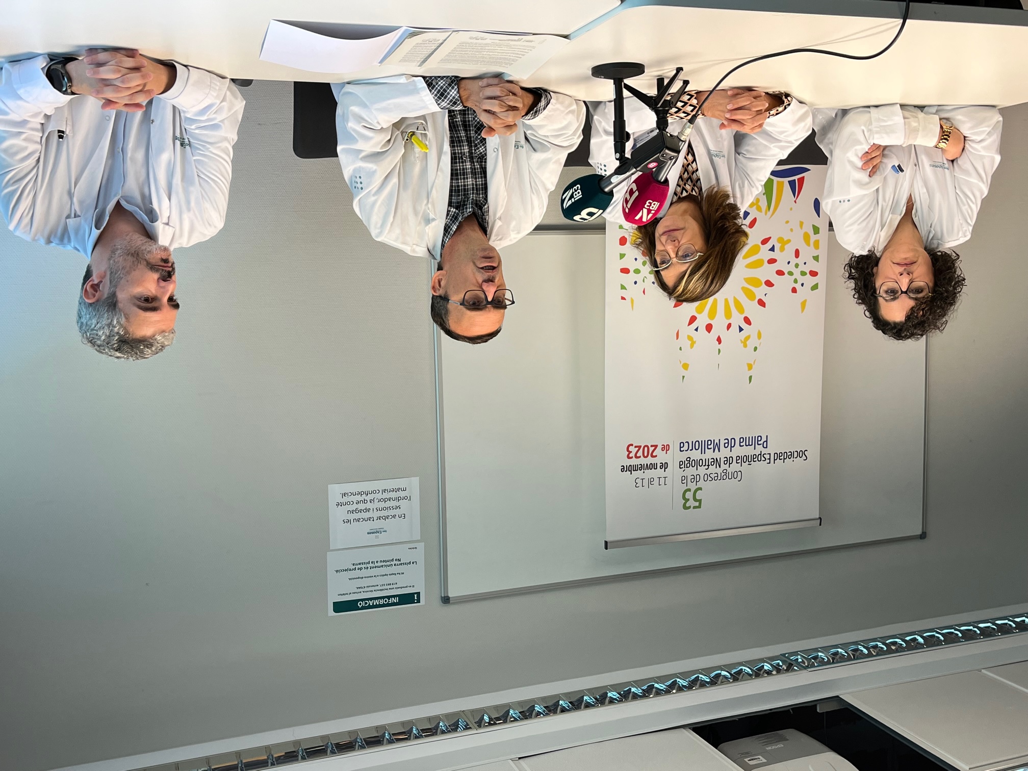 De izda a dcha, Isabel García, la jefa del Servicio de Nefrología del Hospital Universitario Son Espases; Cristina Granados, gerente del Hospital; Gonzalo Gómez, presidente del Comité Organizador del Congreso; y Francisco Fanjul, subdirector médico.