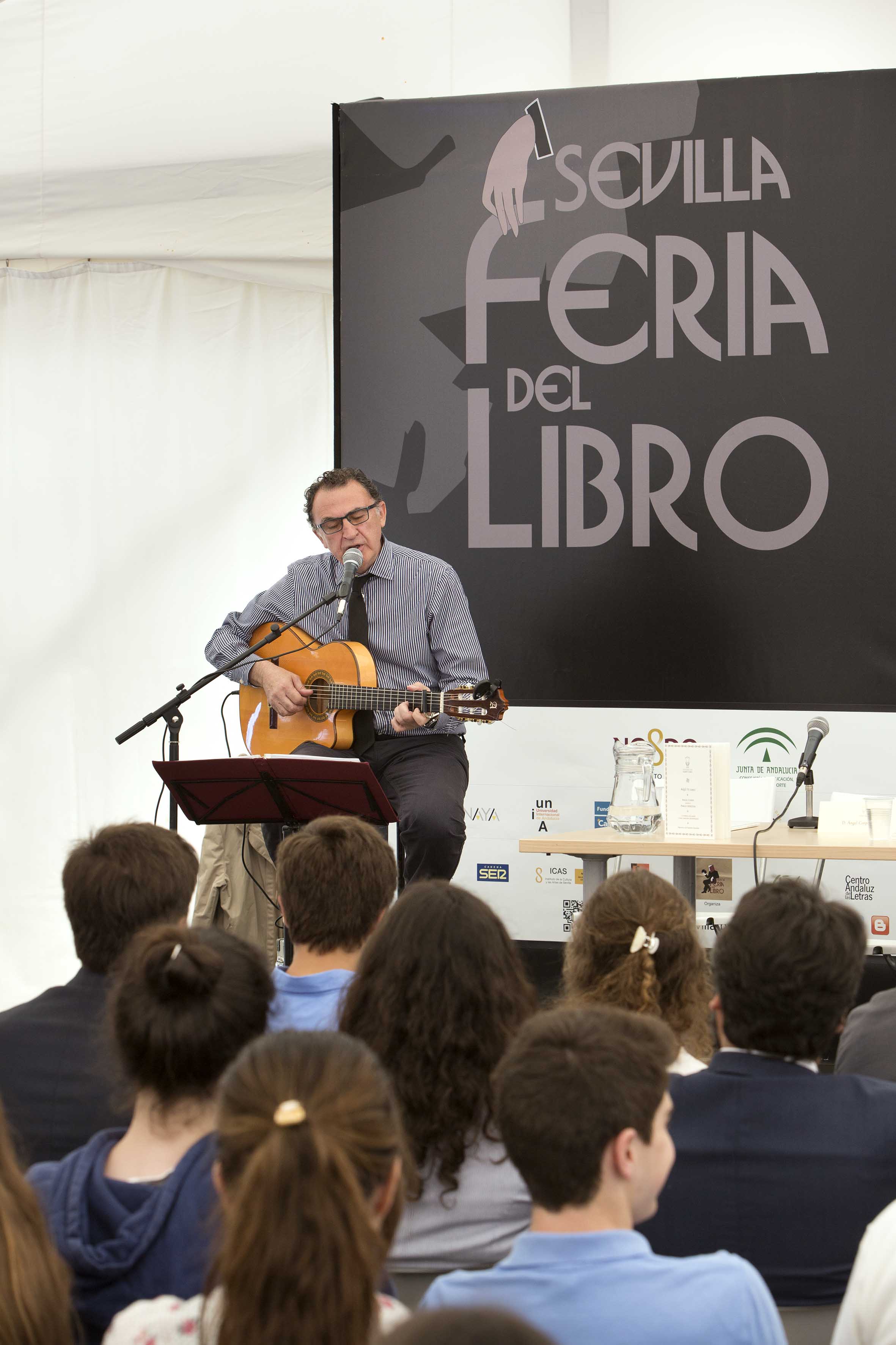 La obra ha sido presentada en la Feria del Libro de Sevilla y lleva por título ‘Aquí te amo. 12 poemas de amor y una canción desesperada. Ángel Corpa canta a Pablo Neruda’; el artista interpretó en directo algunos de los poemas musicados.