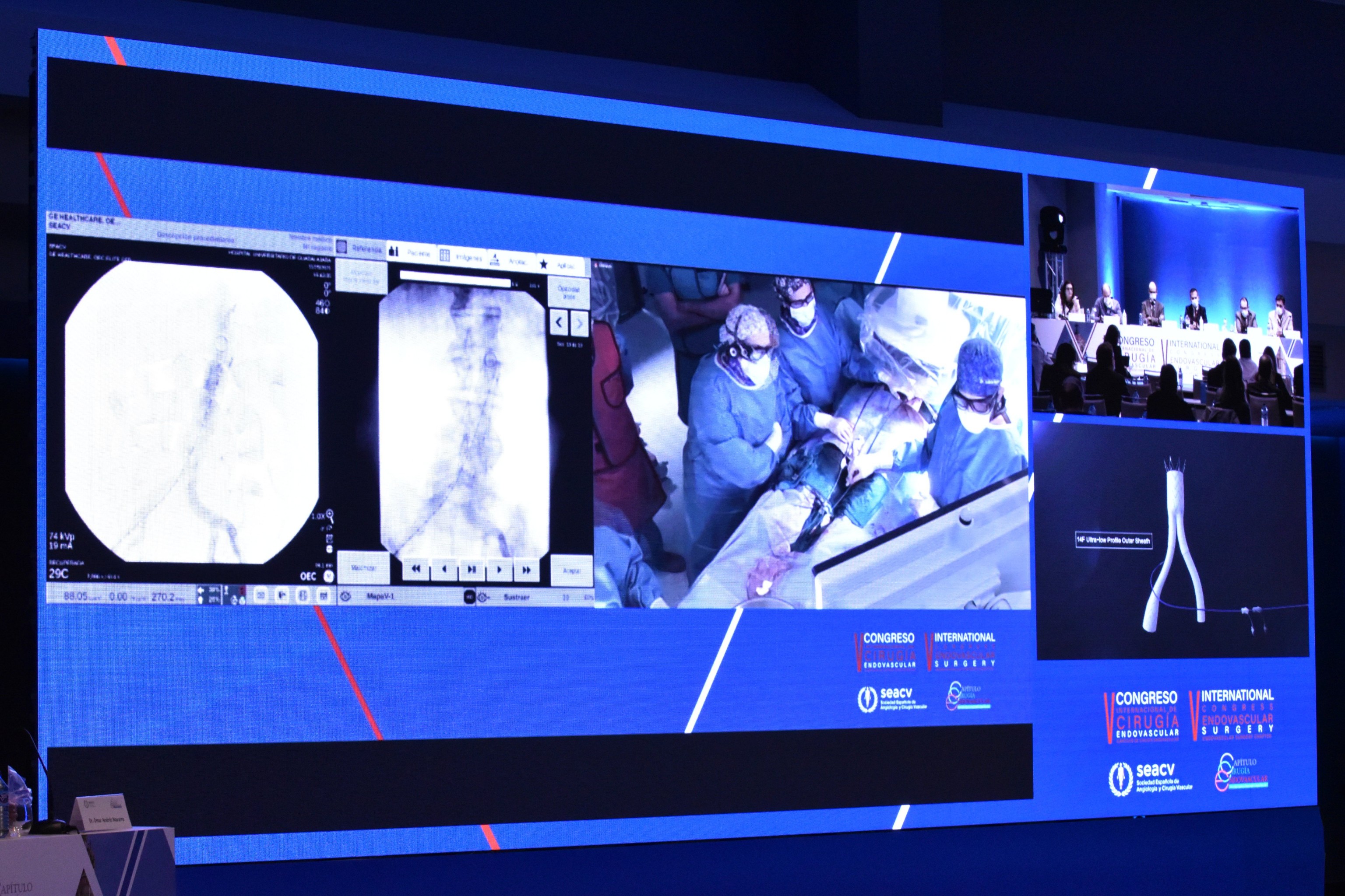Imagen de una de las retransmisiones de casos en vivo desde varios hospitales nacionales e internacionales durante el Congreso