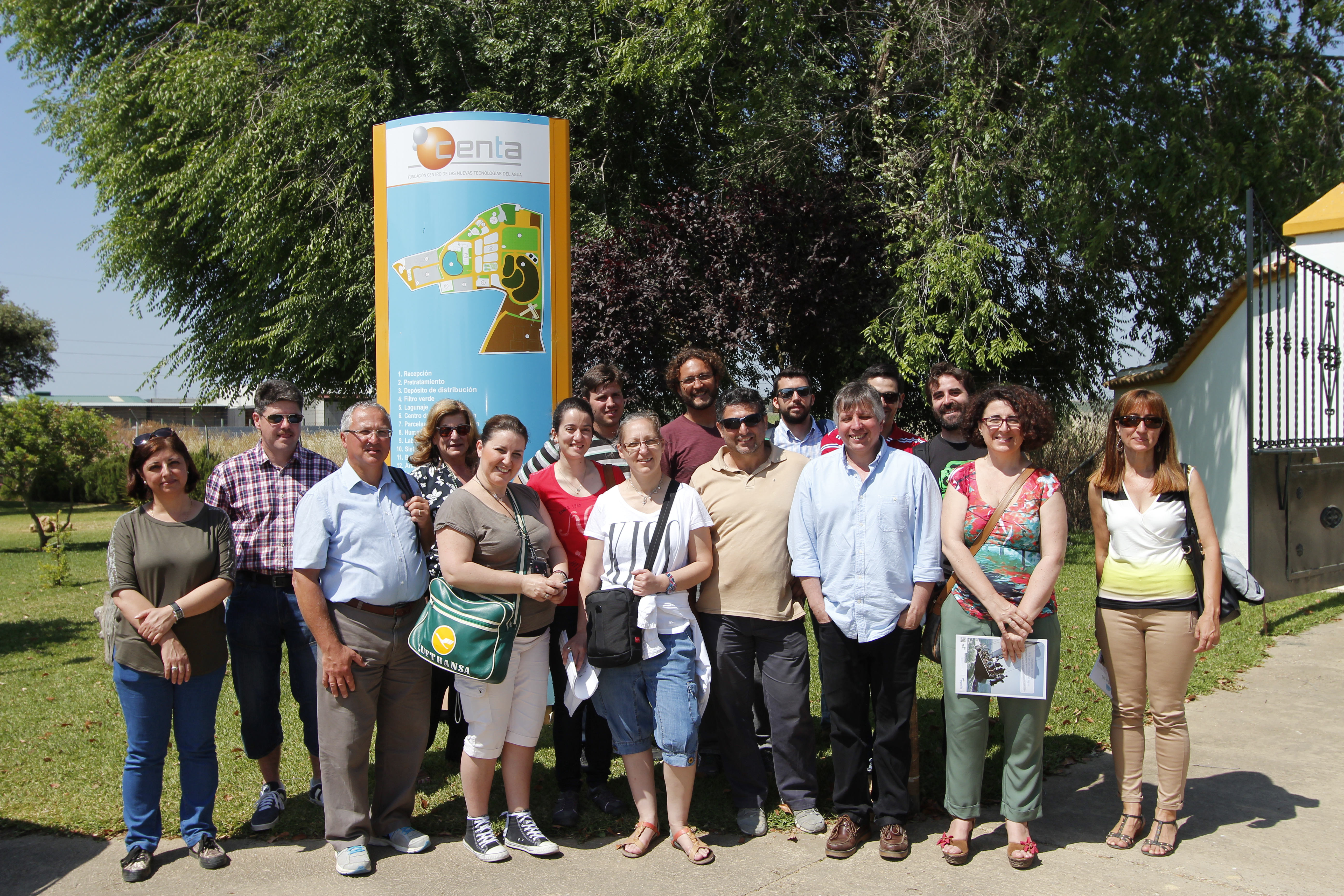 El programa también marcaba una visita a la Comunidad de Regantes de Tintín (Córdoba), donde la reutilización de aguas está destinada principalmente al cultivo de vid y olivo, y al igual que en Cuatro Vegas, la reutilización ha sido la única salida para los agricultores en una región donde la escasez de agua amenaza la continuidad de la actividad agrícola. Ese mismo día también se visitó la Comunidad de Regantes Genil-Cabra en Santaella en donde se mostraron sistemas de control para una mejor gestión del riego en parcela. Por último, los investigadores conocieron la Fundación CENTA (Centro de Nuevas Tecnologías del Agua), en Carrión de los Céspedes (Sevilla), un referente internacional en la investigación sobre tecnologías alternativas y de bajo coste para el tratamiento de aguas residuales y que ha sabido adaptarse a los retos que plantea la gestión del agua y encontrar soluciones adaptadas a pequeñas poblaciones gracias a su apuesta decidida por la I+D+i.
